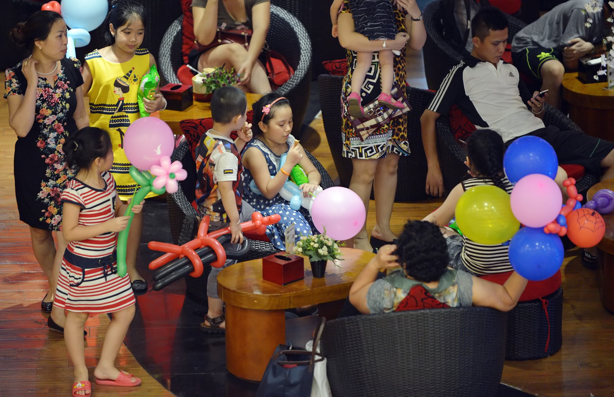 | Các bé với nhiều bóng bay trong tay ngày Quốc tế thiếu nhi. |