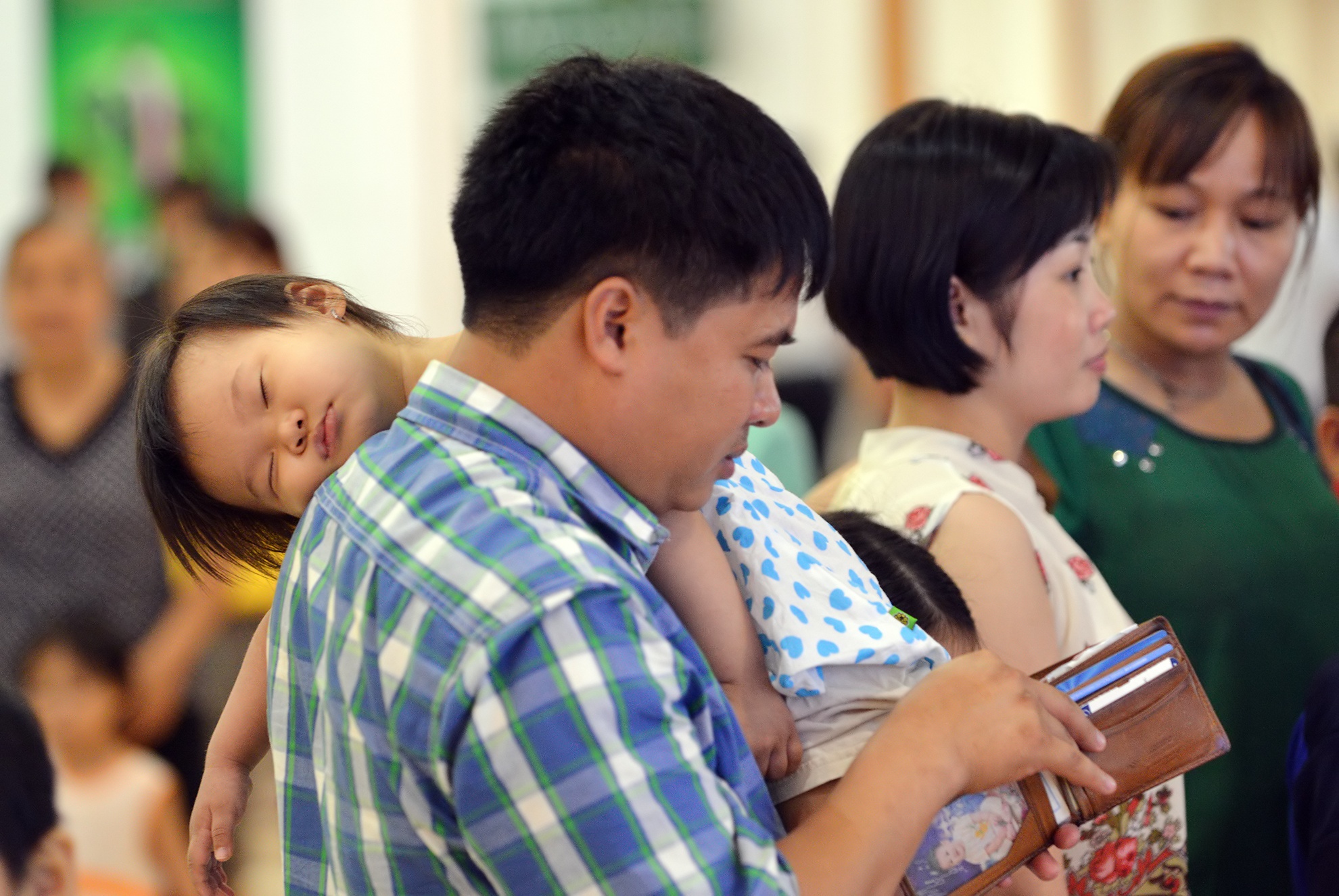 Một em nhỏ đã "tận hưởng" xong ngày 1/6, ngủ gục trên vai bố.