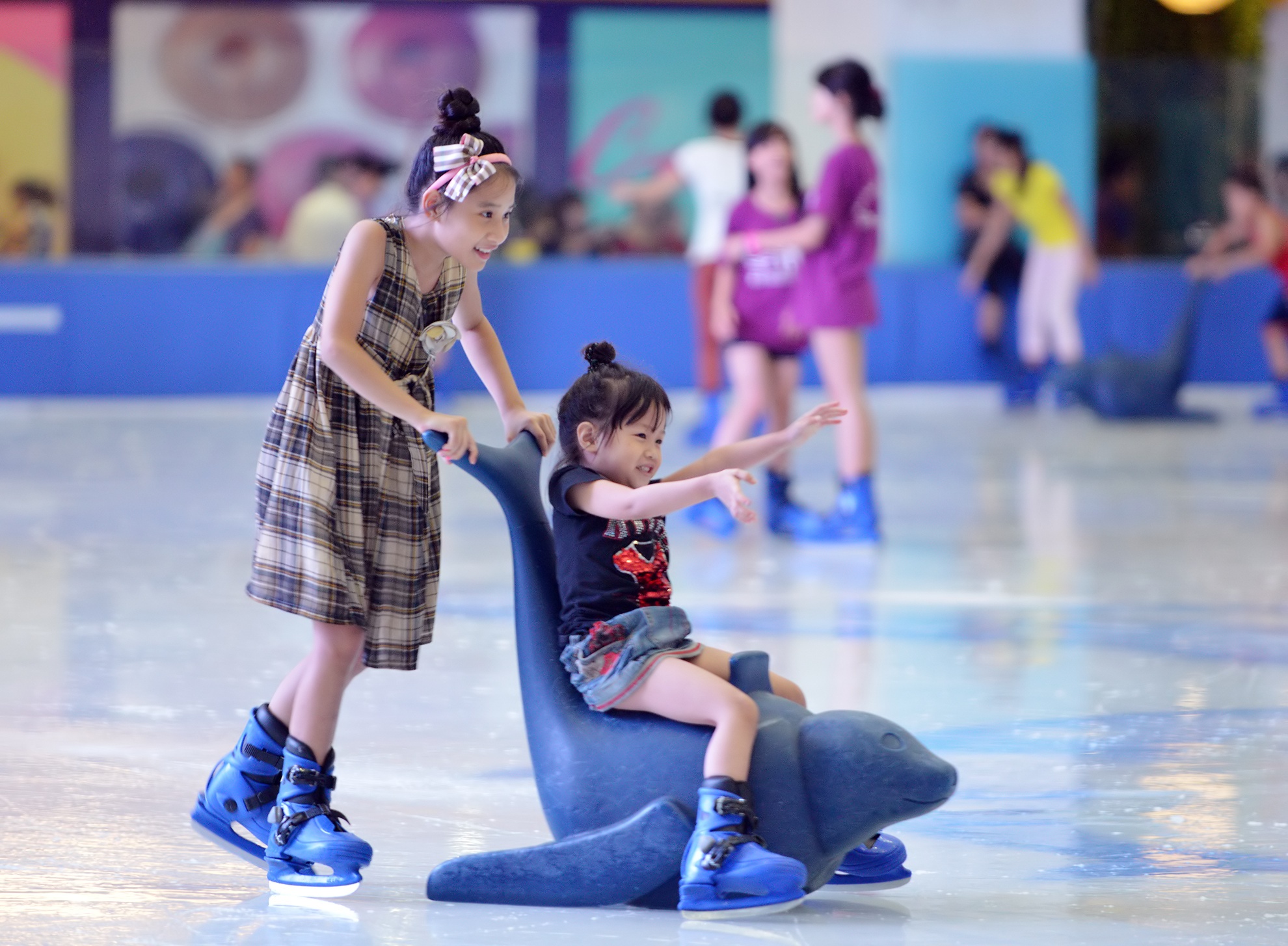 ... thì số khác lại thích thú với sân trượt băng. Giá vé trong ngày 1/6 vẫn không thay đổi so với bình thường, dao động 150.000-220.000 đồng/người.