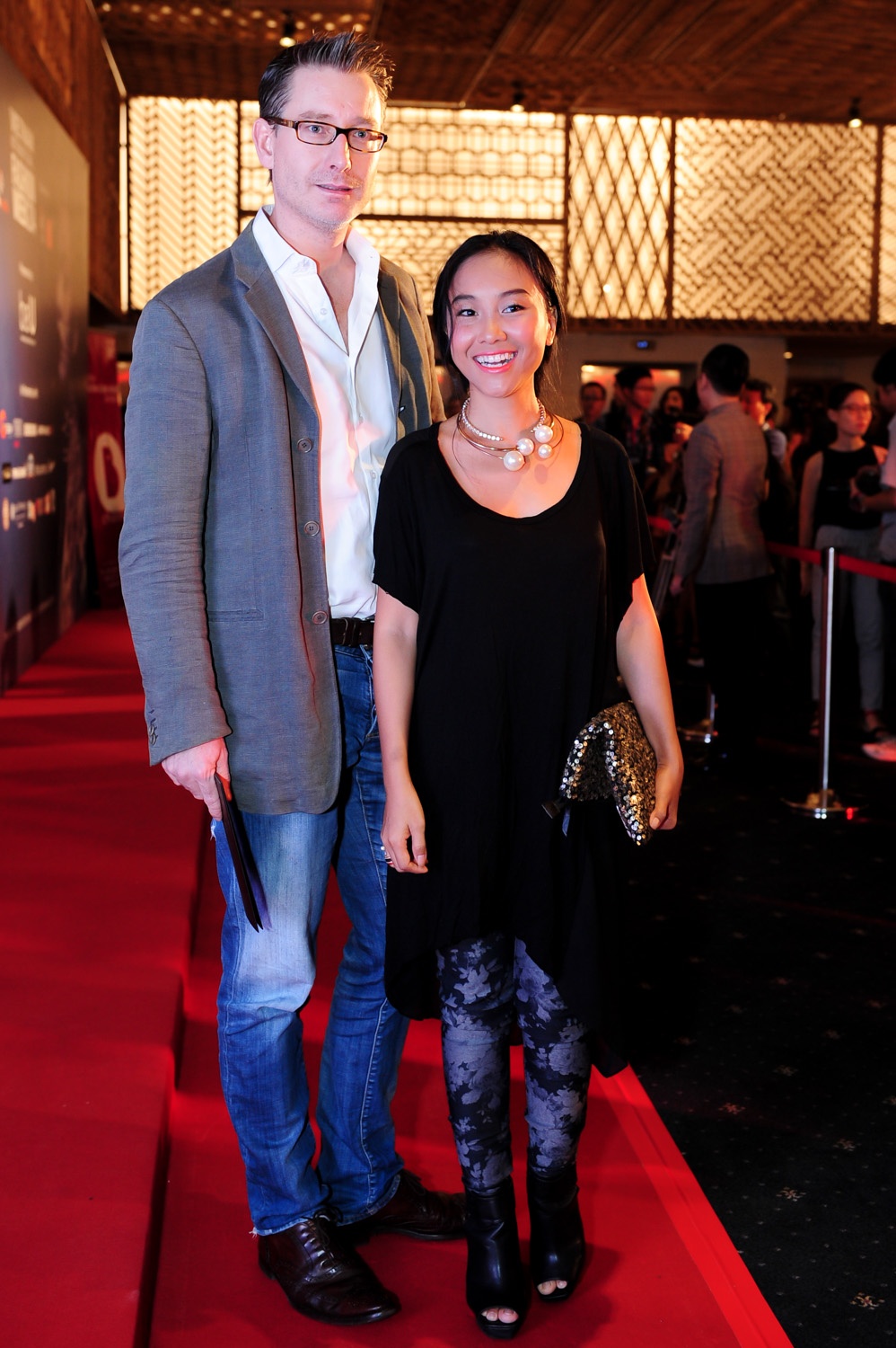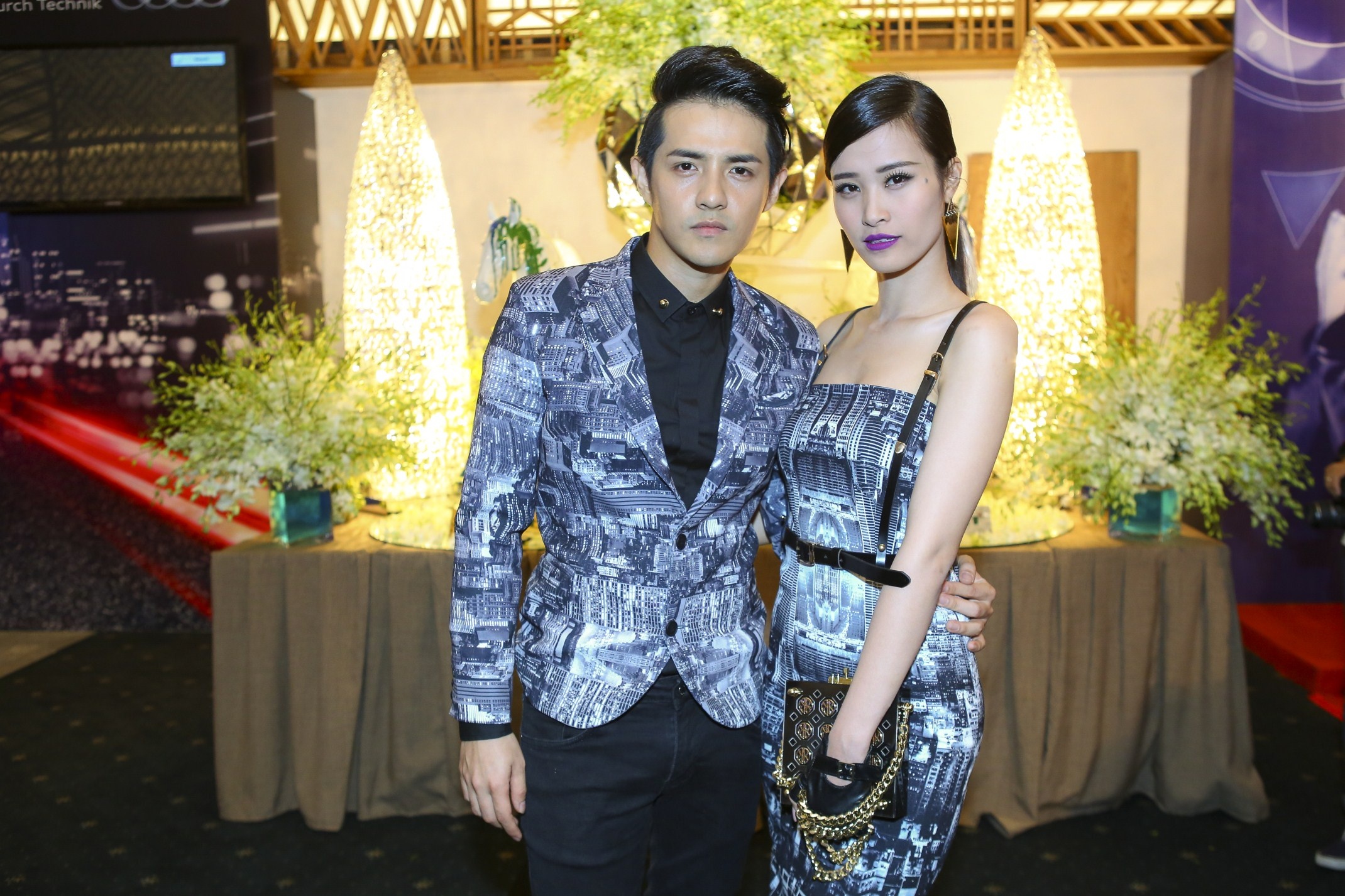 | Không kém cạnh Vĩnh Thụy - Thu Hằng, cặp đôi Trang Pháp và nhạc sĩ Dương Khắc Linh diện trang phục ăn ý khi đồng hành tại sự kiện thời trang lần đầu tổ chức tại Việt Nam. Nhạc sĩ trông đơn giản với bộ sơ-mi và vest, trong khi đó bạn gái anh khá bắt mắt với bộ đầm ánh kim quyến rũ. |