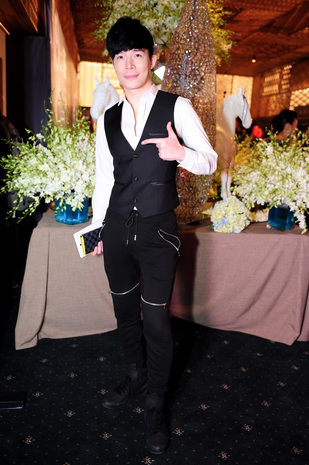 | Duy trì hình ảnh lịch lãm, Nathan Lee diện áo sơ-mi trắng cùng ghi lê đen xuất hiện khá bảnh bao. |