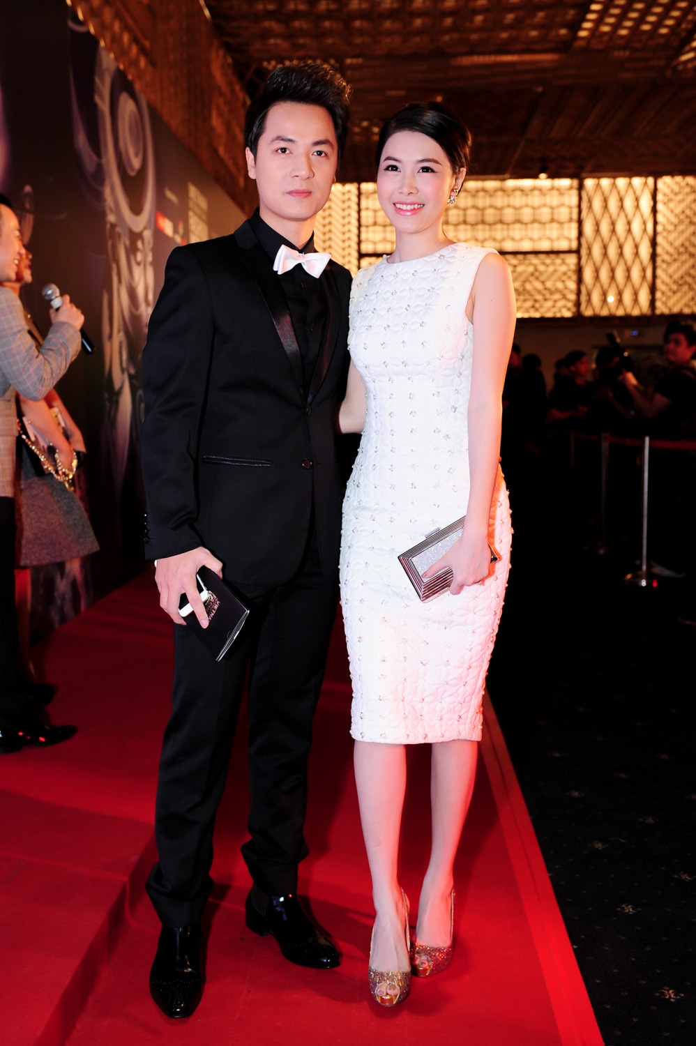 | Vợ chồng Đăng Khôi - Thủy Anh cũng là điểm nhấn đẹp mắt tại sự kiện thời trang. Bà xã hot girl thanh lịch trong mẫu váy ôm dáng gam trắng, còn nam ca sĩ đồng điệu với vest đen, nơ trắng lịch thiệp. |