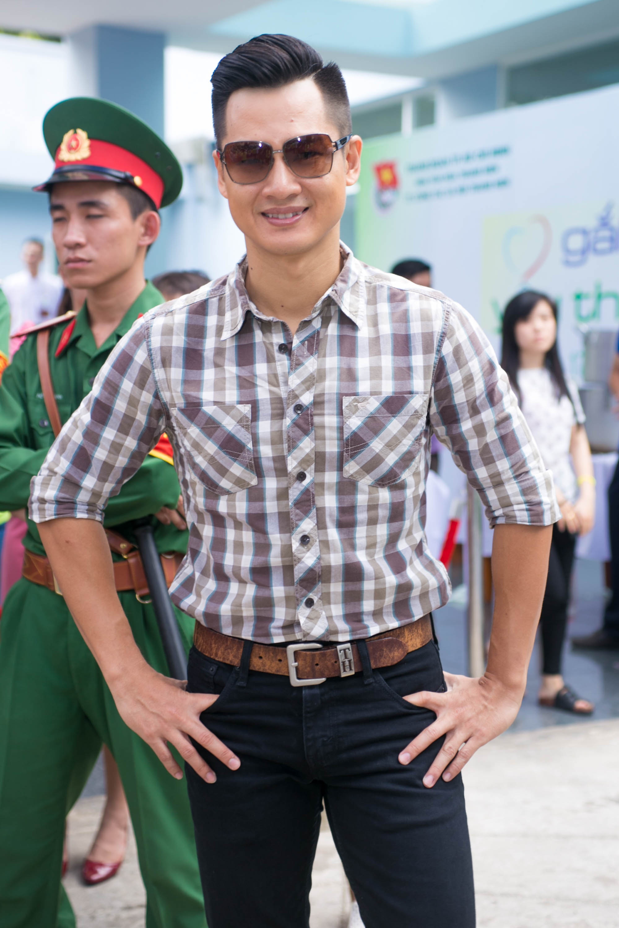 | Nam ca sĩ Đức Tuấn lựa chọn sơ mi, quần bò giản dị cho buổi từ thiện. Hồi tháng 4, anh kỷ niệm 15 năm ca sĩ bằng buổi biểu diễn mang tên Bài ca không quên tại Nhà hát Hòa Bình (TP HCM). |