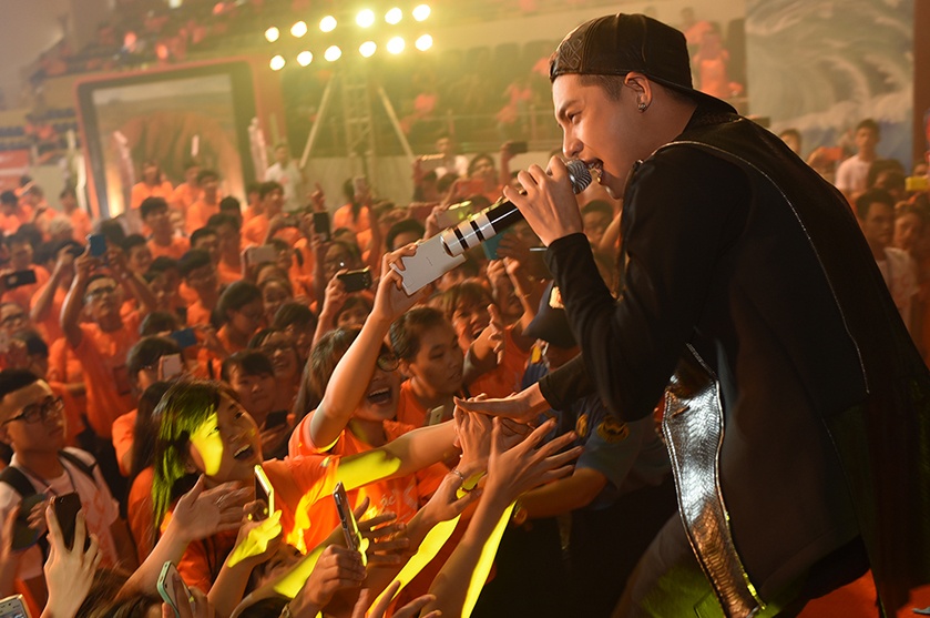 | Giọng hát và phong cách giao lưu nhiệt tình của nam ca sĩ khiến khán giả không ngừng hò reo. |