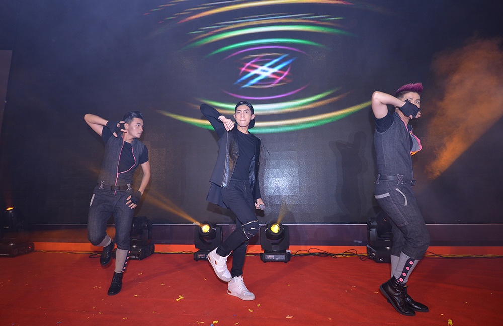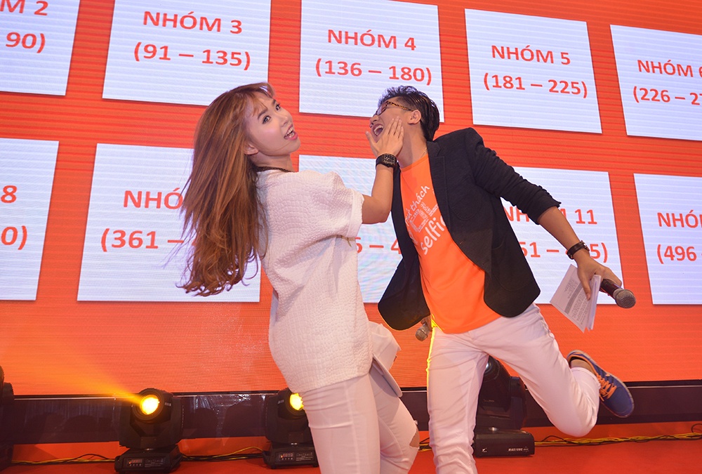 | Khởi My và MC Công Tố "quậy tung" sân khấu. |