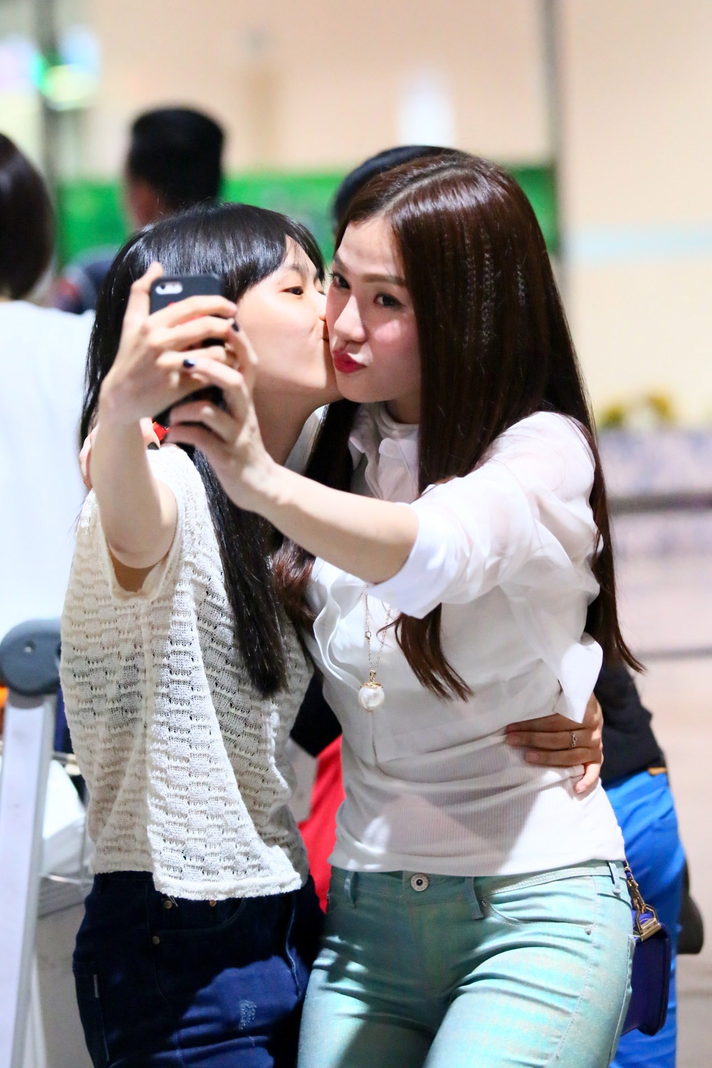 | Quán quân Bước nhảy hoàn vũ đi ra sân bay cùng mẹ. Không còn nhỏ nhưng đi đâu, nữ ca sĩ cũng được mẹ tháp tùng và chăm sóc chu đáo. |
