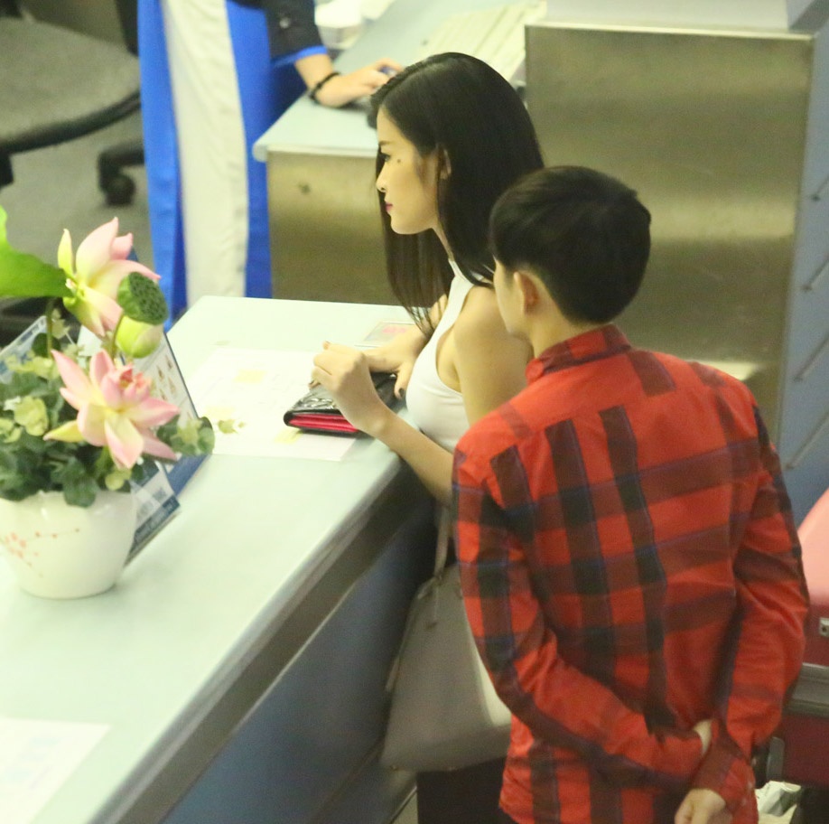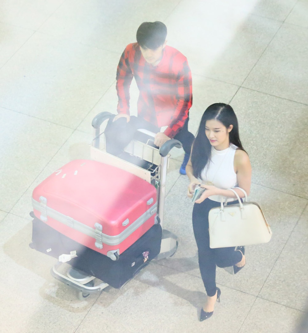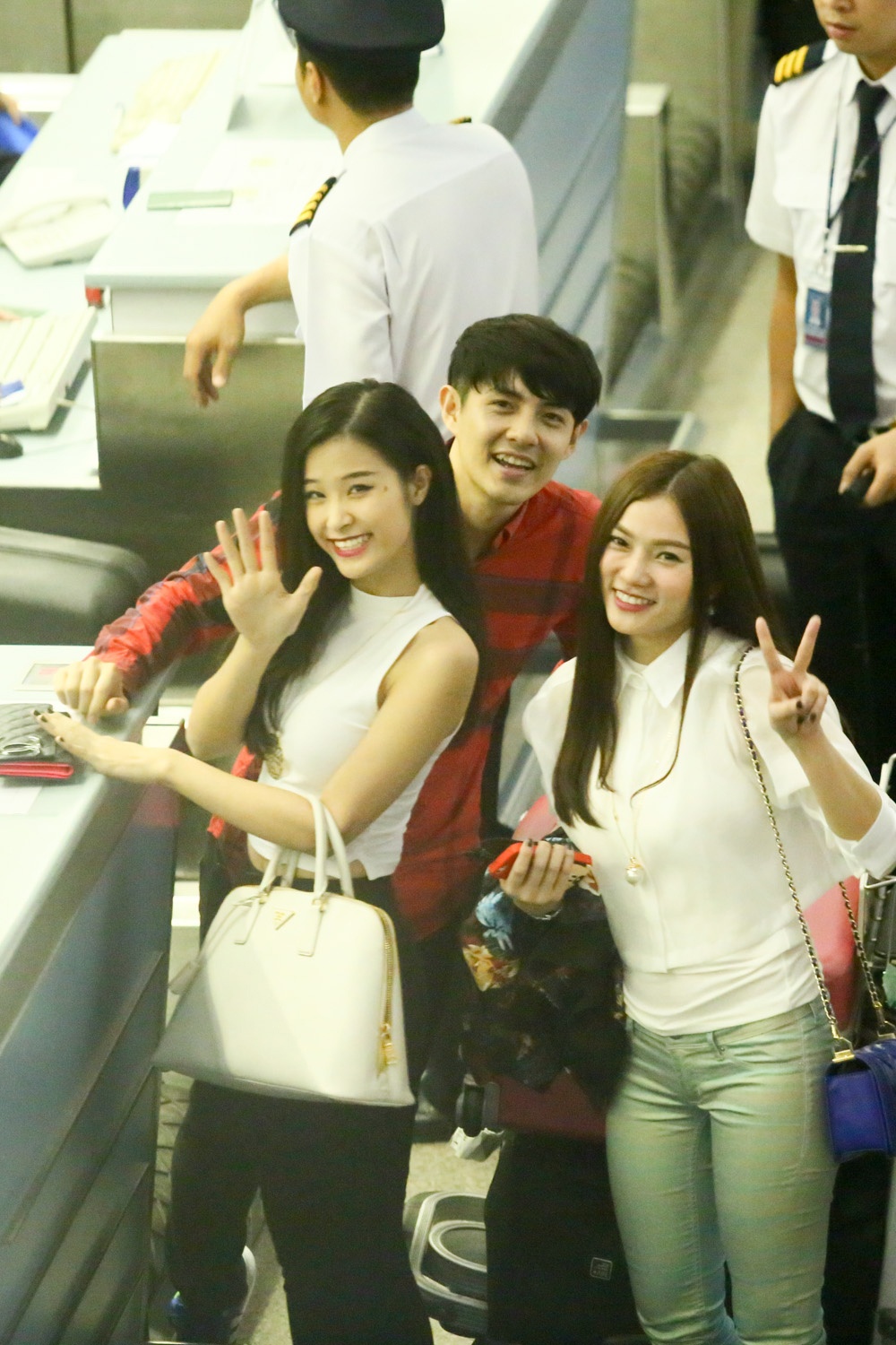Xuất hiện ở chỗ đông người, Đông Nhi và Ông Cao Thắng không thể hiện tình cảm thắm thiết như mọi khi. Họ chỉ thực sự cởi mở, thoải mái khi gặp đàn chị Thu Thủy ở quầy làm thủ tục.