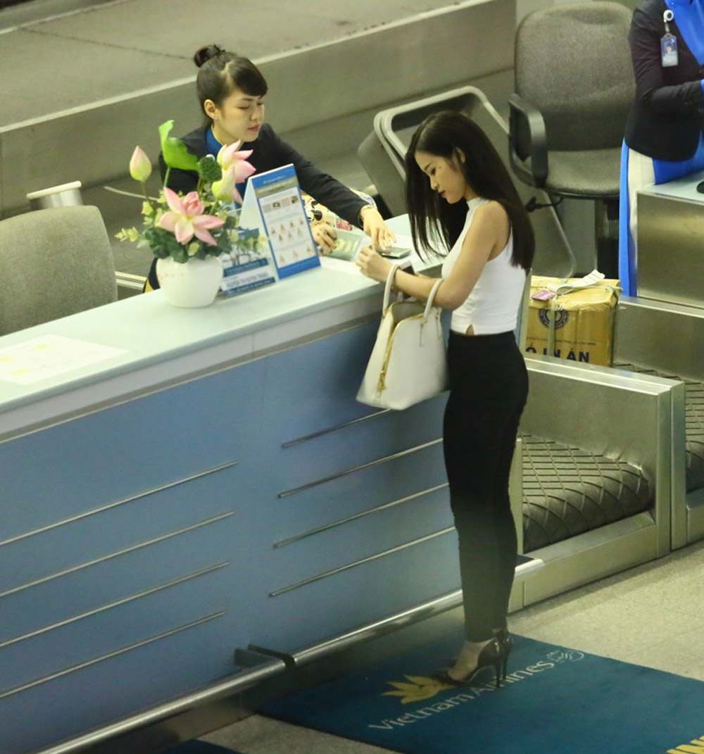 | Mẹ của Thu Thủy chỉ tiễn cô ra sân bay và hỗ trợ con gái làm thủ tục chứ không bay cùng cô. |