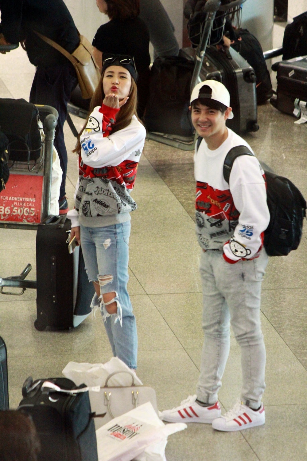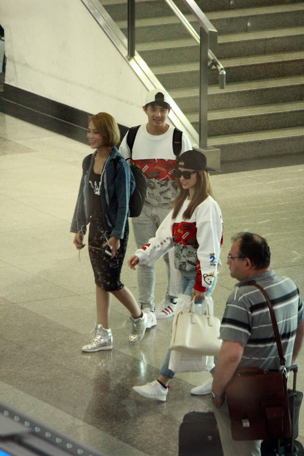 Trở về từ chuyến lưu diễn nước ngoài, cặp đôi lựa chọn trang phục năng động, thoải mái khi xuất hiện ở sân bay Tân Sơn Nhất.