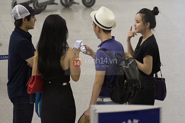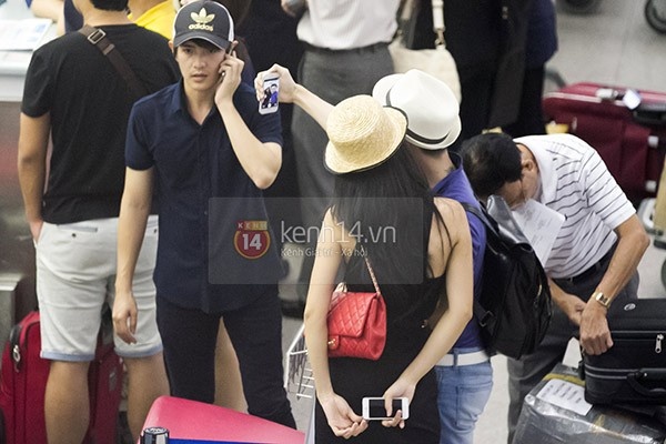 | trong lúc chờ làm thủ tục check-in lên máy bay, Đông Nhi và Ông Cao Thắng tranh thủ chụp hình với nhau. |