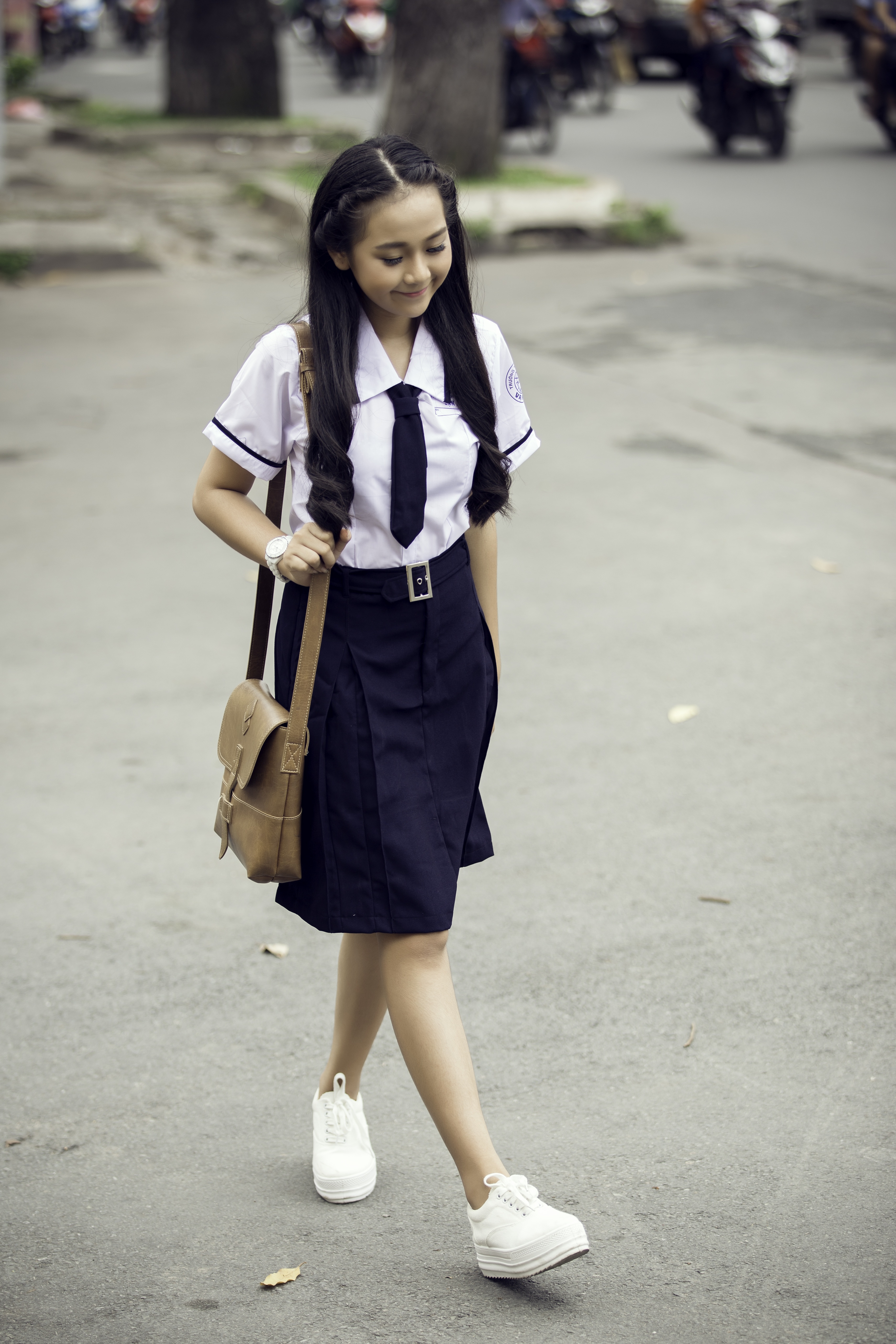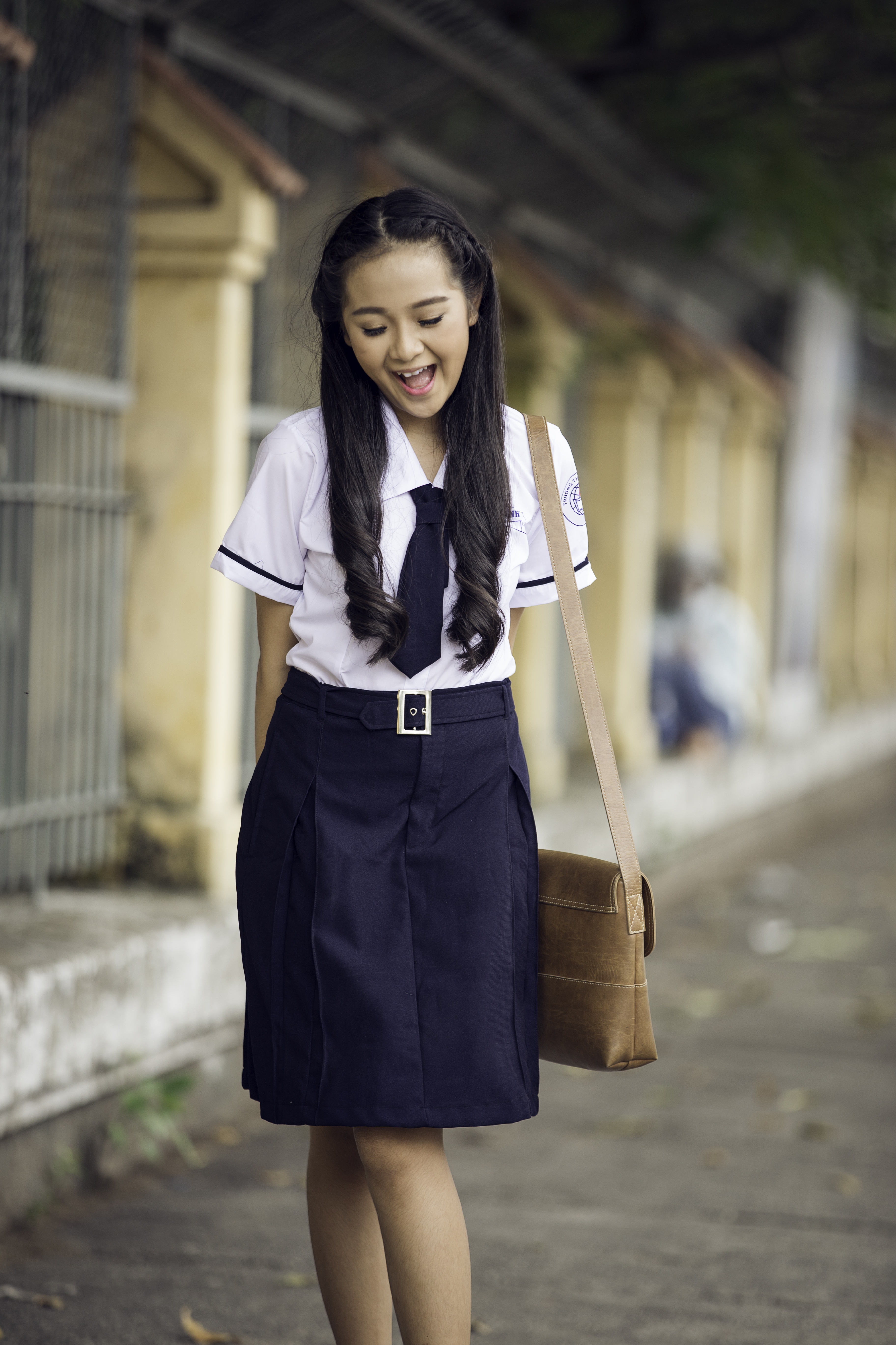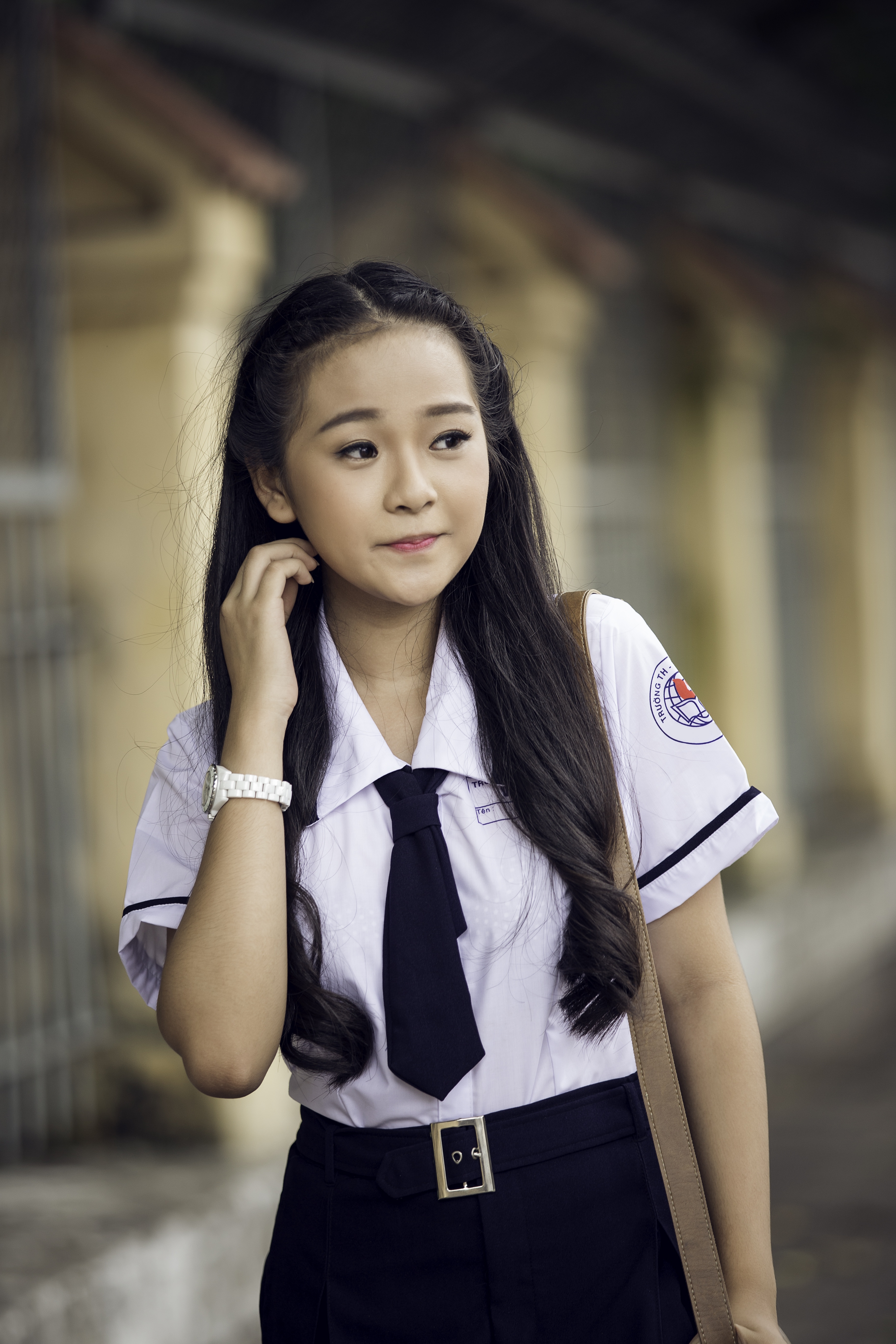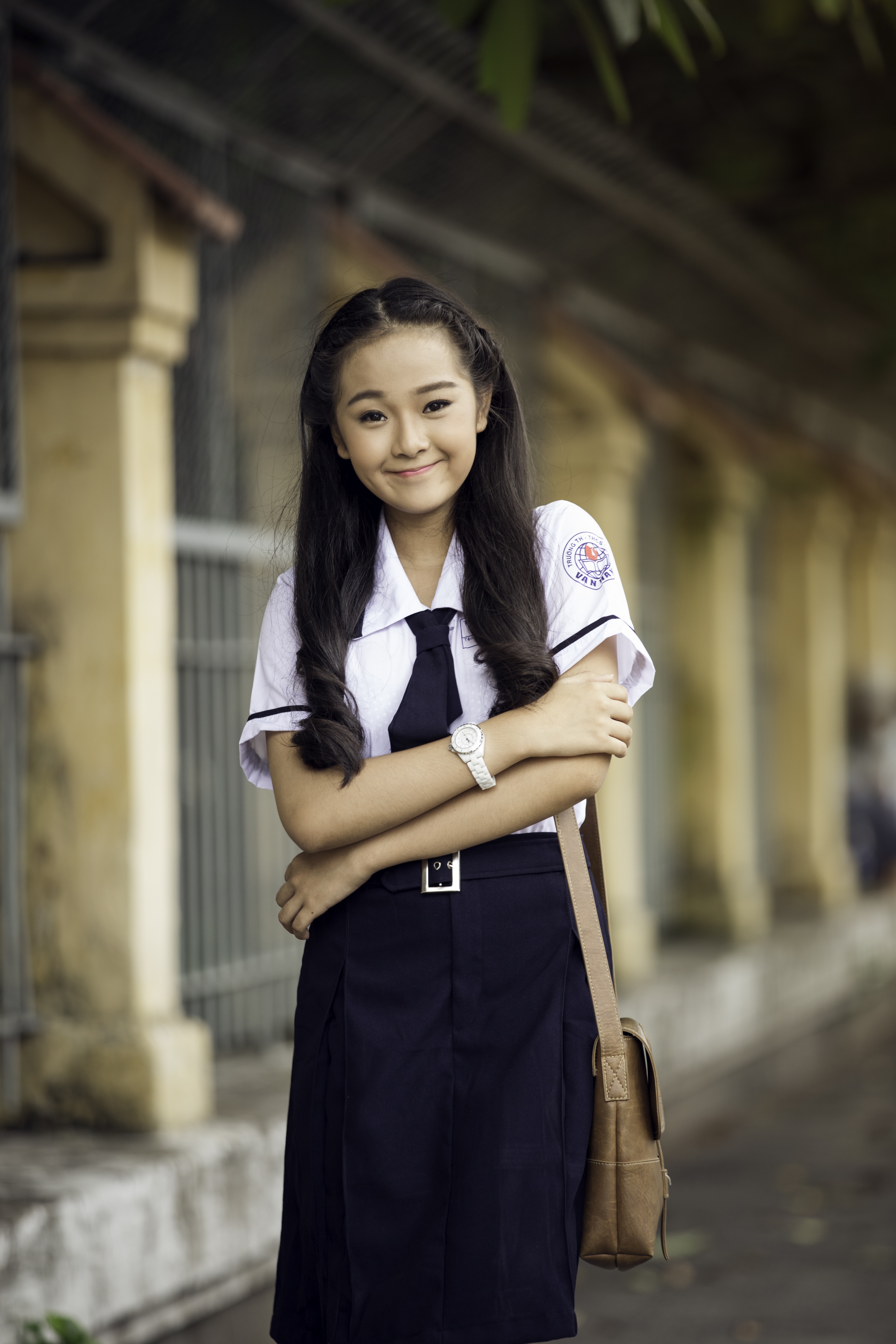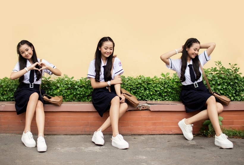 | Trong ngày tựu trường, cô gái tuổi 16 xinh tươi trong bộ đồng phục giản dị. |