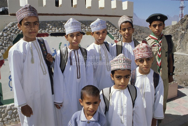 Ở các nước theo tôn giáo thì đồng phục học sinh thường mang đậm dấu ấn và bản sắc riêng. Ví dụ ở đất nước Oman theo đạo Hồi, trang phục truyền thống của học sinh là áo dài trắng. Nam thì đội mũ lệch còn nữ thì phải đeo mạng che mặt ngay cả khi ngồi trên lớp. Điểm đáng chú ý là đồng phục của học sinh luôn có hương thơm rất đặc biệt.