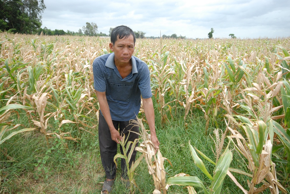 | Nông dân Nguyễn Hương (Vĩnh Long) cho biết diện tích bắp nhà ông bị cháy nắng, không có nước tưới nên đã chết hết, thiệt hại gần 100 triệu đồng. |