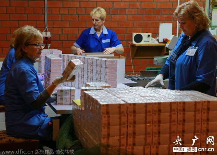 Những nhân viên đóng gói các cọc tiền cẩn thận trước khi tung ra thị trường tiêu thụ. |