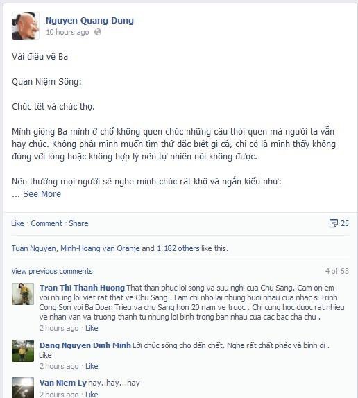 Những dòng tâm sự, cảm nhận về ba và về đạo lý làm người, về quan niệm sống của đạo diễn Nguyễn Quang Dũng đã khiến rất nhiều người xúc động, nghẹn ngào.