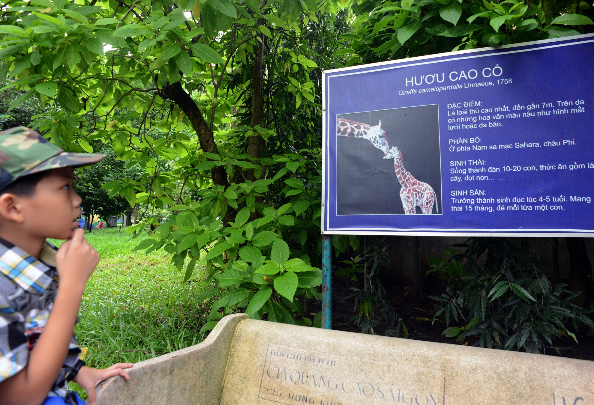 | Nhiều trẻ em thích thú khi lần đầu tiên tận mắt chứng kiến loài động vật thường chỉ thấy trên tivi. Không chỉ quan sát, cậu bé này còn rất chăm chú đọc thông tin về loài vật. |