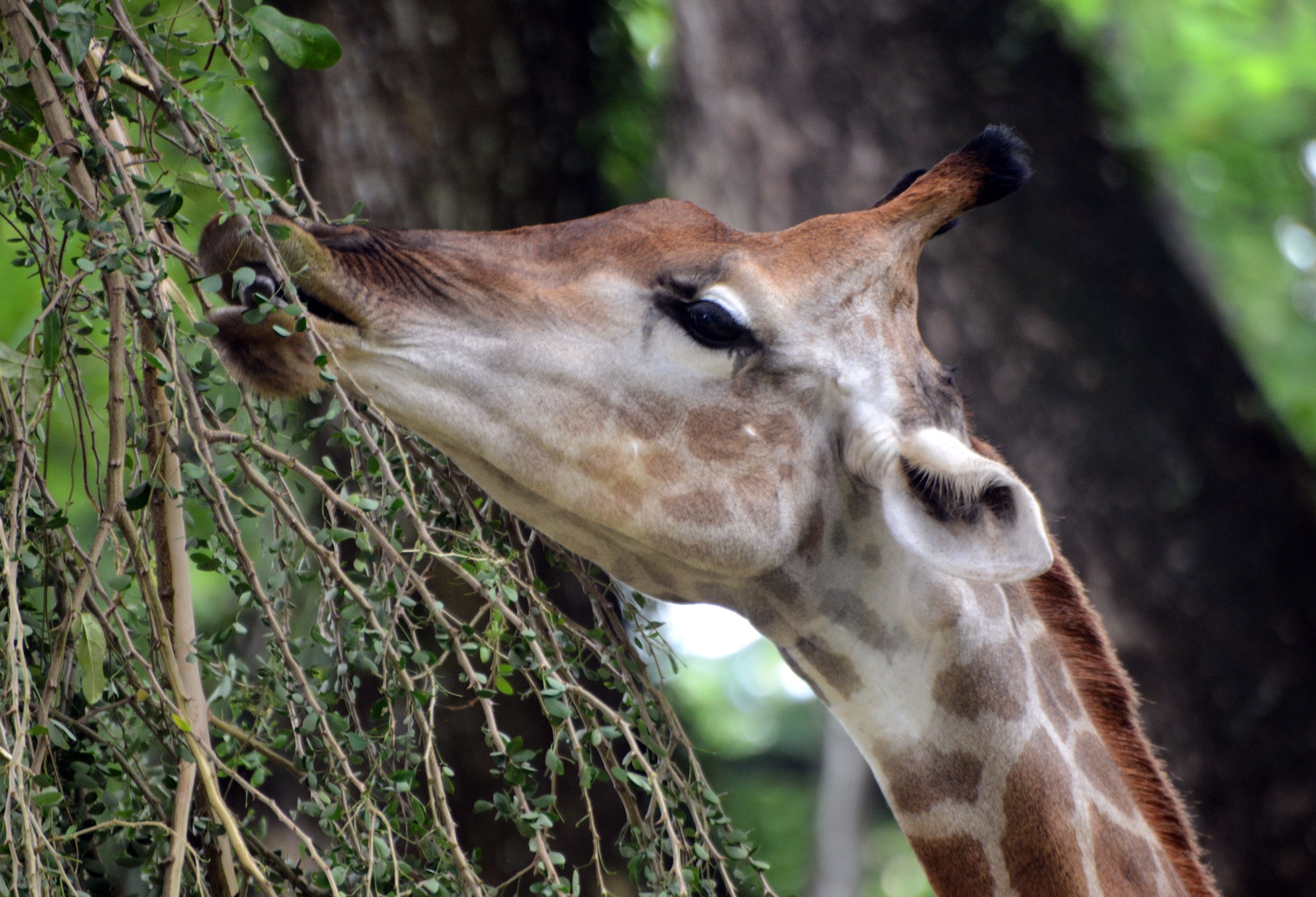 | Thức ăn chủ yếu của hươu cao cổ là là cây, đọt non trên cao. Tại Thảo Cầm Viên, món ăn sở thích số 1 của chúng là cây me keo, được trồng ở các huyện ngoại thành TP.HCM như Hóc Môn, Củ Chi. Ngoài ra, chúng còn ăn các loài cây như dâu tằm, lá mận, lá khế, cỏ... |