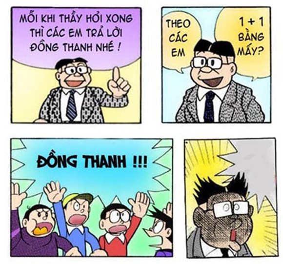 Thầy giáo dặn cả lớp đồng thanh trả lời kết quả, vậy mà tất cả lại cùng hô "đồng thanh" để đáp lời thầy.