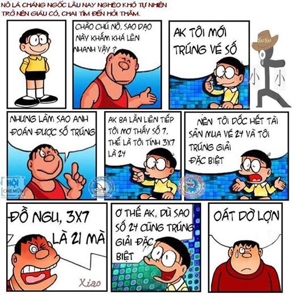 Tuy tính nhầm 7 nhân 3 bằng 24 nhưng Nô vẫn mua vé và trúng độc đắc.