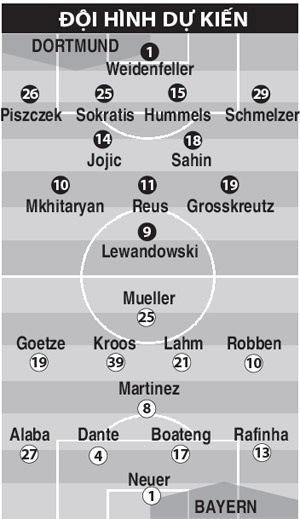 Đó là cơ sở để tin các học trò của Klopp sẽ có đủ thể lực để duy trì lối chơi pressing, khiến Bayern gặp khó. Cùng với Marco Reus và Robert Lewandowski đang có phong độ rất cao, Dortmund biết cách để trừng phạt đối thủ.
