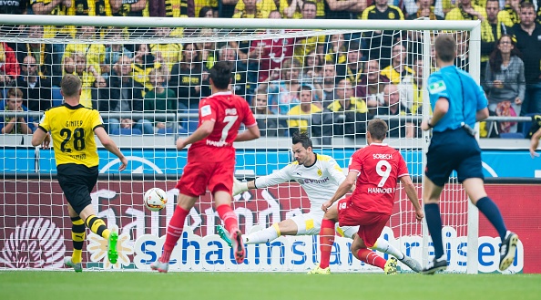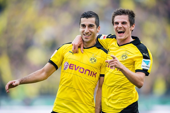 | Henrikh Mkhitaryan giúp Dortmund vươn lên dẫn 2-1 phút 44. Trong tình huống này, Ginter là người kiến tạo để tiền vệ người Armenia lập công. |