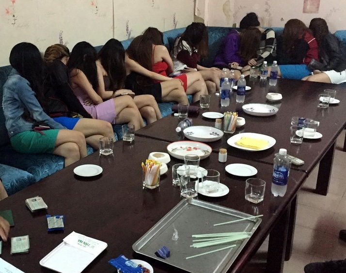Trong 2 phòng này có 9 khách (người Đài Loan và Trung Quốc) cùng 8 nữ tiếp viên ăn mặc mát mẻ ngồi uống bia, hát karaoke.