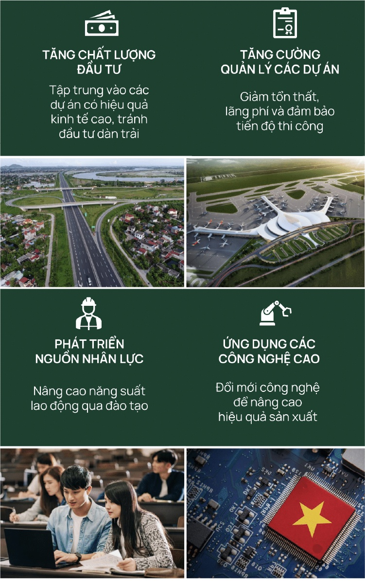 Trong năm cuối của kế hoạch trung hạn 2021-2025, mức đầu tư công ghi nhận kỷ lục lên đến 32 tỷ USD (hơn 6% GDP) đã được Quốc hội phê duyệt. Mặt khác, Chính phủ đã tra soát 57 dự án trọng điểm dang dở nhiều năm qua để xử lý lãng phí vốn nhà nước; đồng thời chọn lọc các dự án chiến lược tập trung vào 2 lĩnh vực hạ tầng giao thông và năng lượng, đặt tốc độ hoàn thành làm ưu tiên hàng đầu để tạo động lực cho tăng trưởng kinh tế.