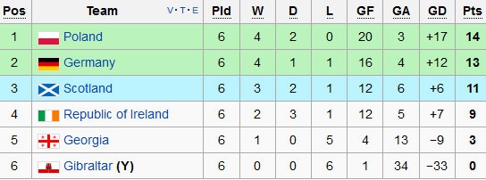 Từ phút 57 đến 81, ĐT Đức có 4 lần làm tung lưới của Gibraltar, trong đó Andre Schuerrle ghi thêm 2 bàn để hoàn tất cú hat-trick. Giành chiến thắng cách biệt 7 bàn, nhưng ĐT Đức chỉ xếp thứ hai bảng D khi kém đội dẫn đầu Ba Lan một điểm sau 6 trận.