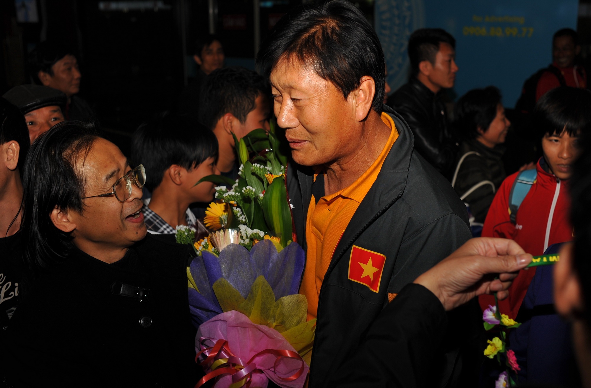 | Lãnh đạo VFF gồm Phó chủ tịch Nguyễn Lân Trung, Tổng thư ký Ngô Lê Bằng cũng có mặt tại sân bay đón và động viên thành tích của thầy trò HLV Trần Vân Phát. |