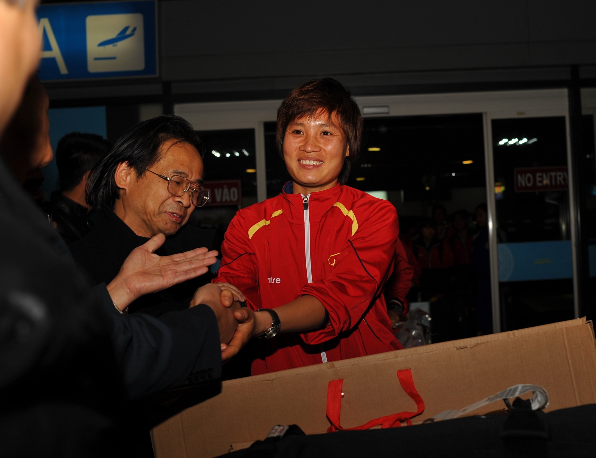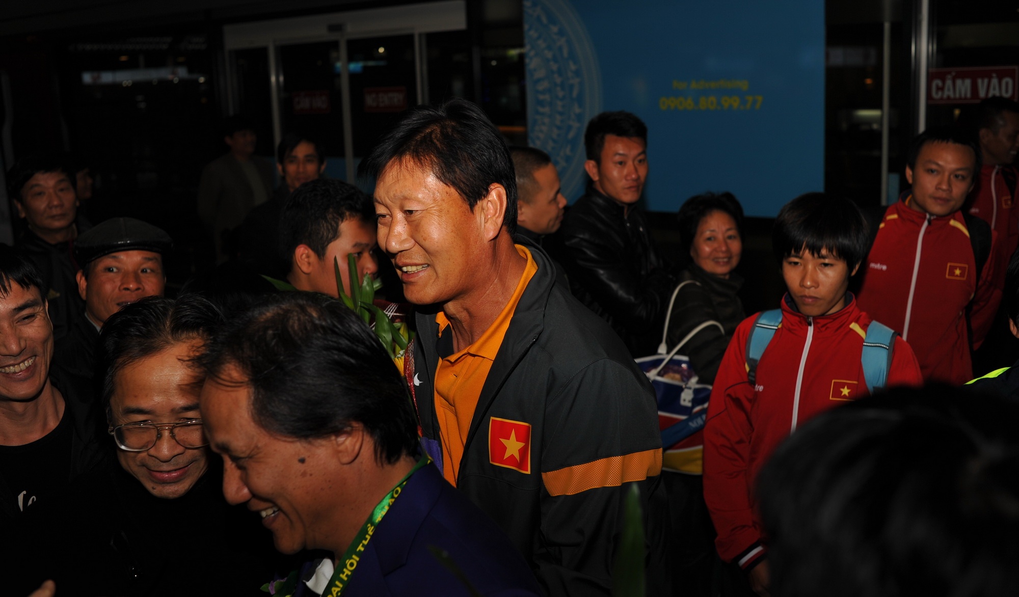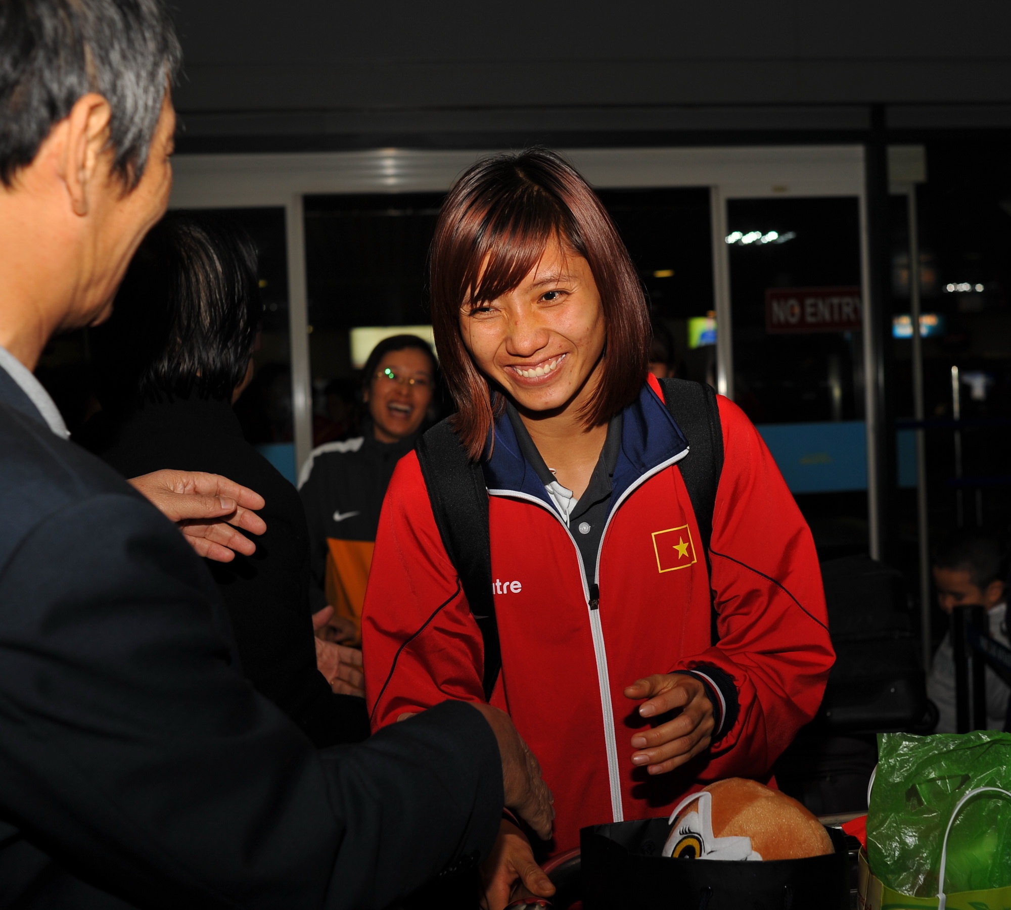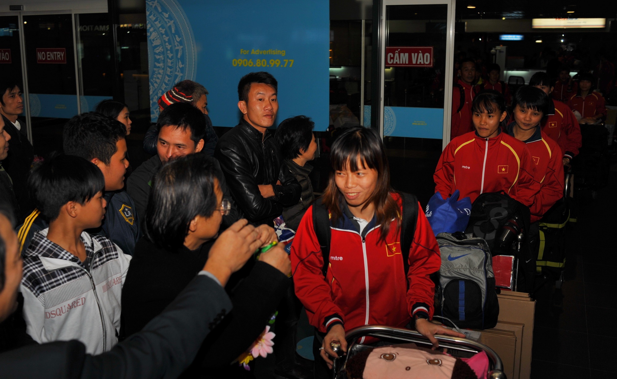 | ĐT nữ Việt Nam được chào đón nồng nhiệt tại sân bay Nội Bài |