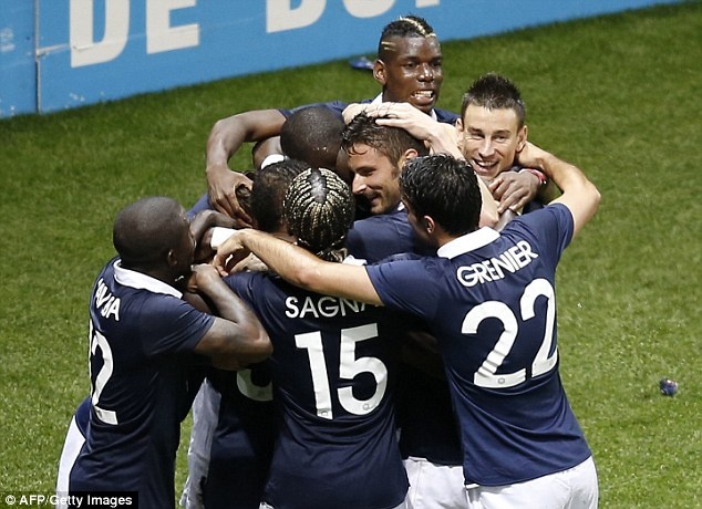 | HLV Deschamps đưa ra sân đội hình ĐT Pháp gồm Lloris, Koscielny, Sagna, Sakho (Mangala, 46’), Evra, Valbuena (Sissoko 72), Matuidi (Grenier 64), Cabaye (Mavuba, 46’), Pogba, Remy (Griezmann, 64’), Giroud. |