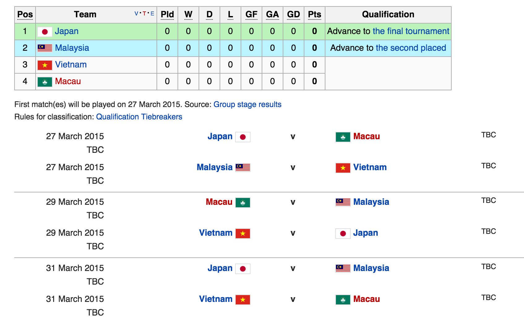| Lịch thi đấu vòng loại U23 châu Á 2016 của U23 Việt Nam diễn ra từ ngày 27 đến 31/3 tại Malaysia. |