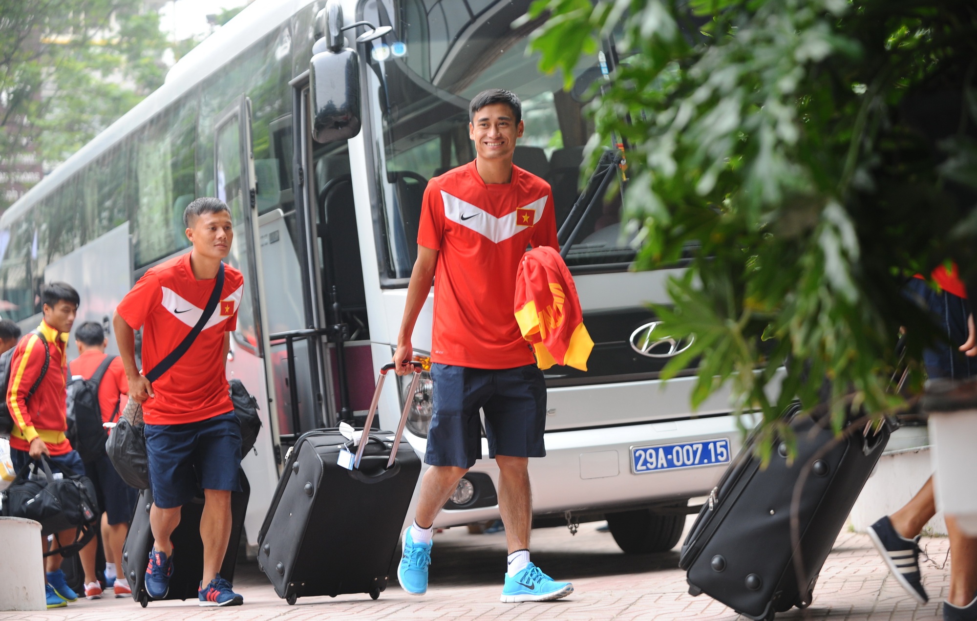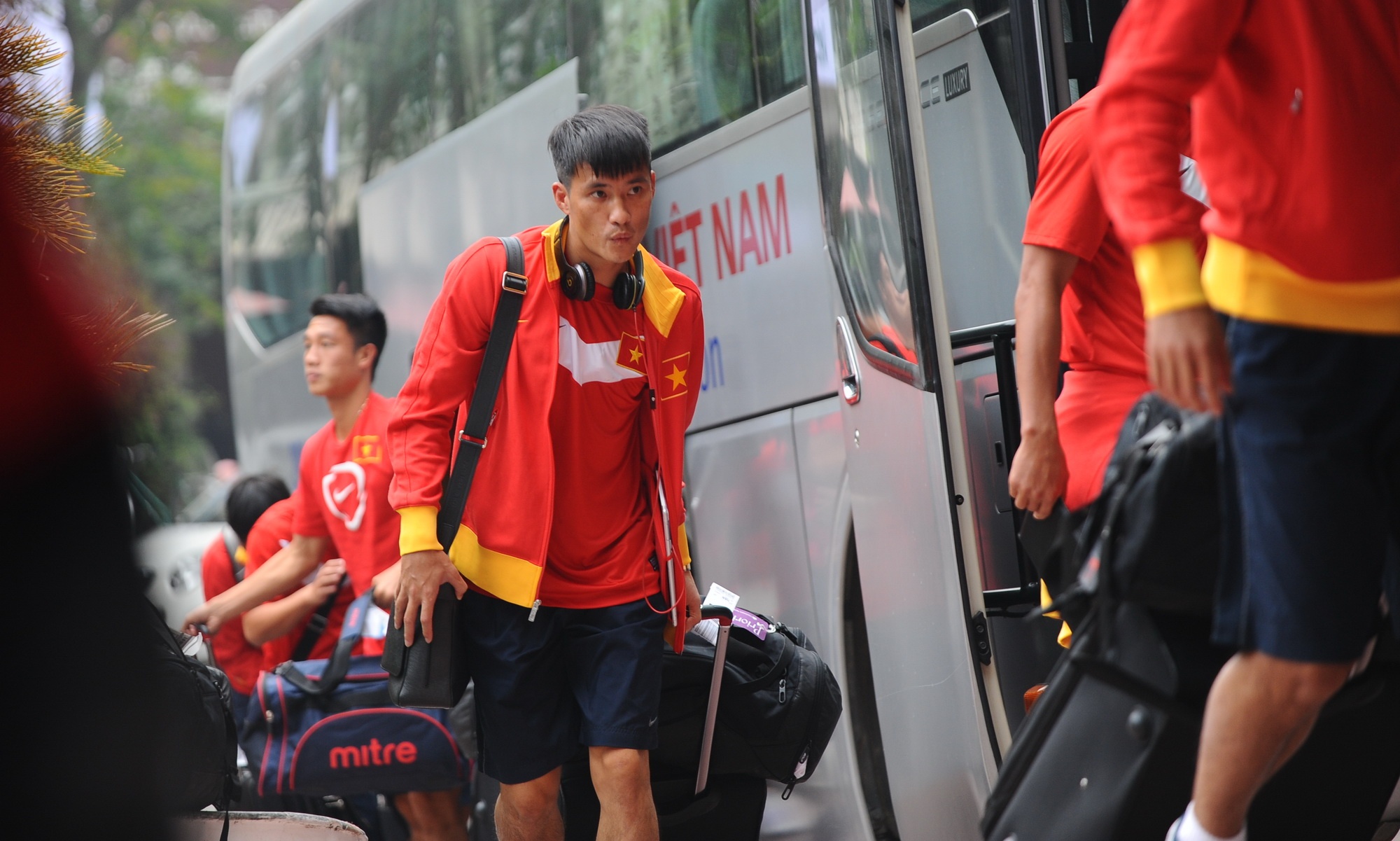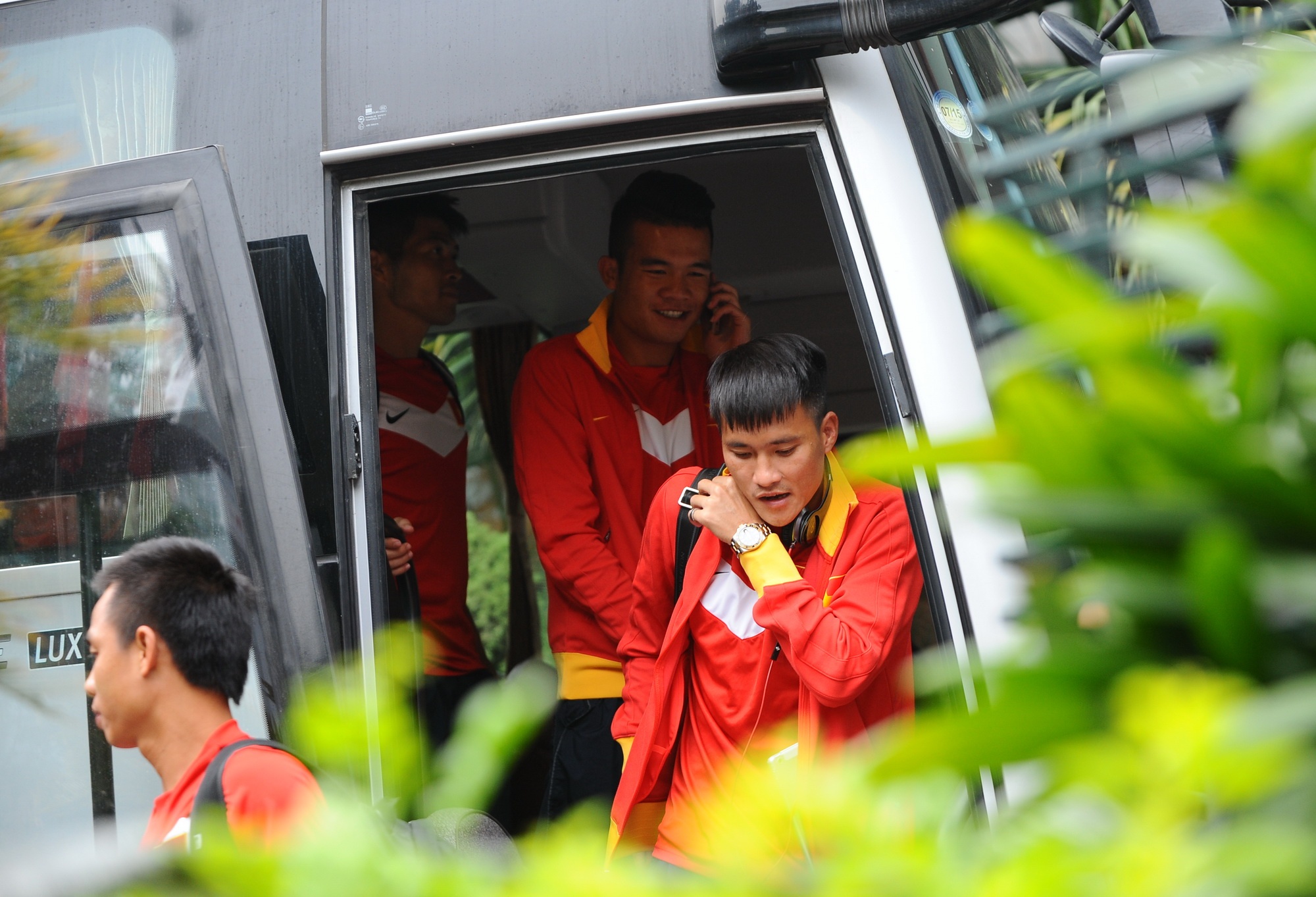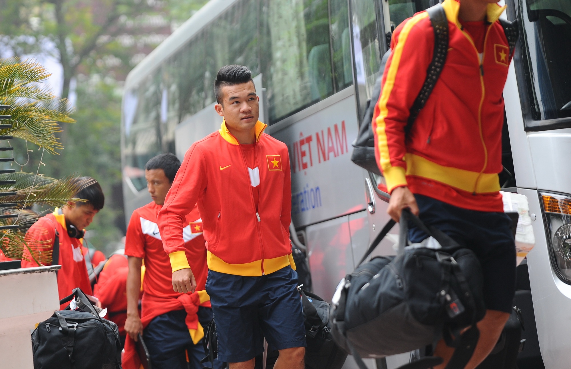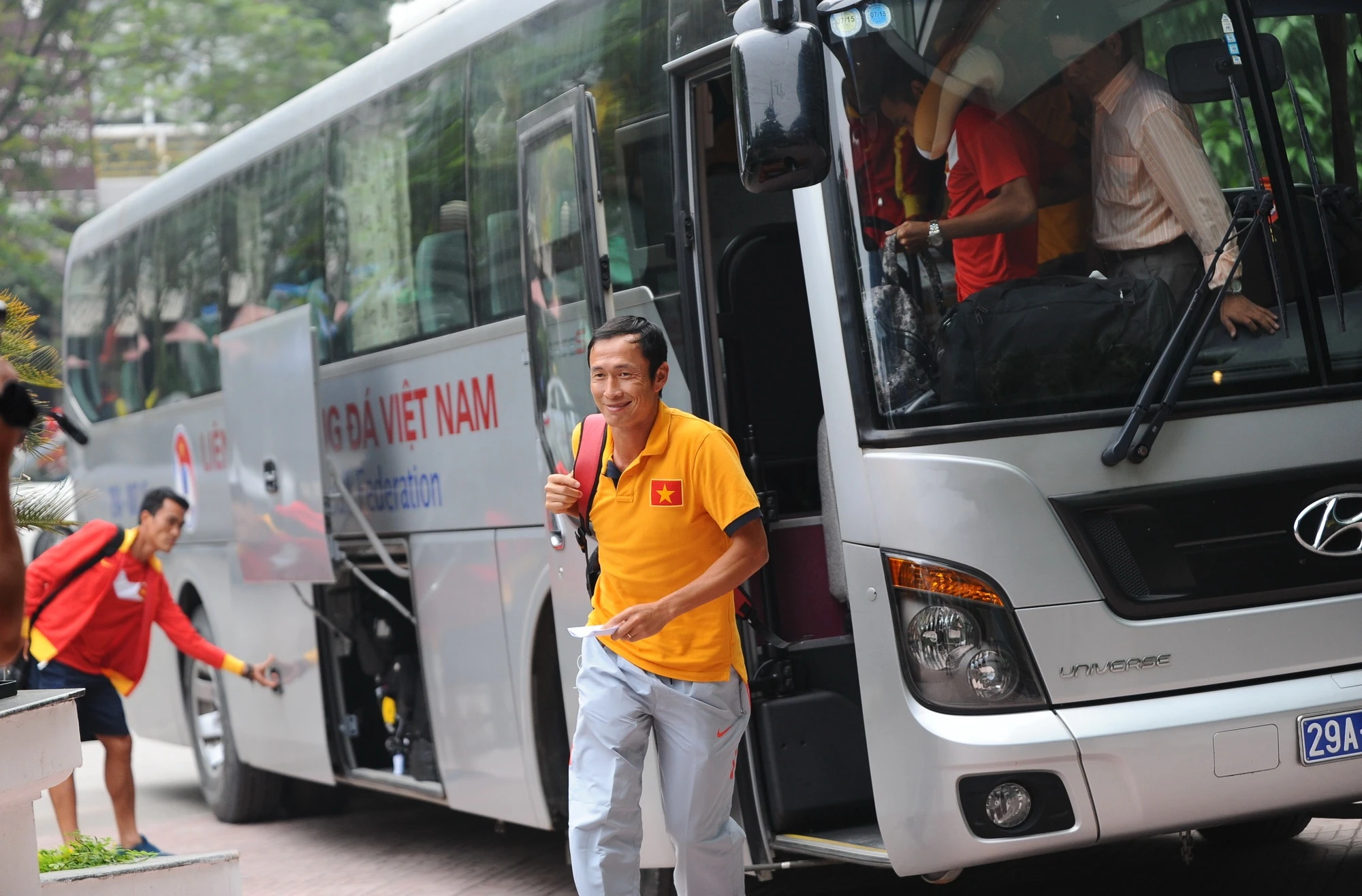 | HLV Miura bận công việc nên đi xe riêng và sẽ hội quân sau cùng các học trò. Dẫn đoàn ĐTVN là trợ lý Đặng Phương Nam. |