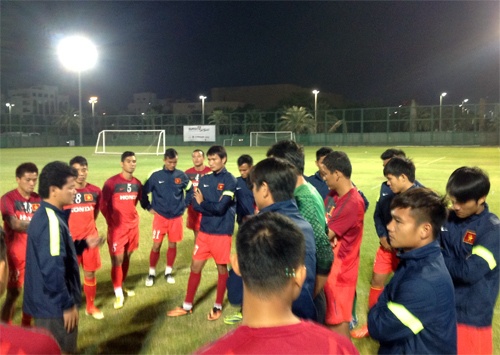 18h00 giờ địa phương tối nay (21h00 giờ Việt Nam), ĐT Việt Nam bước vào buổi tập đầu tiên trên đất UAE. Do đang trong quá trình thi đấu nên giáo án của BHL chủ yếu là các bài tập nhằm lấy lại cảm giác và giải phóng sức ỳ cho các cầu thủ. 9h00 tối mai (23h00 giờ Việt Nam), thầy trò HLV Nguyễn Văn Sỹ sẽ có buổi tập làm quen với mặt sân thi đấu chính Mohammed Bin Zayed, nơi sẽ diễn ra trận lượt về giữa chủ nhà UAE và ĐT Việt Nam. Trong trận đấu này, ĐT Việt Nam không có sự phục vụ của 3 tuyển thủ gồm Tấn Tài (thẻ đỏ), Văn Bình và Văn Nhiên (chấn thương).