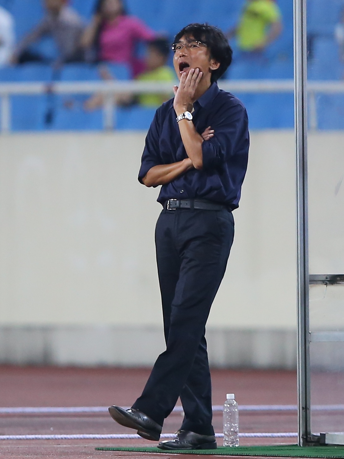 | Phút 60 của trận đấu, HLV Miura tung tiền đạo Việt kiều Mạc Hồng Quân vào sân nhằm tạo đột biến. |