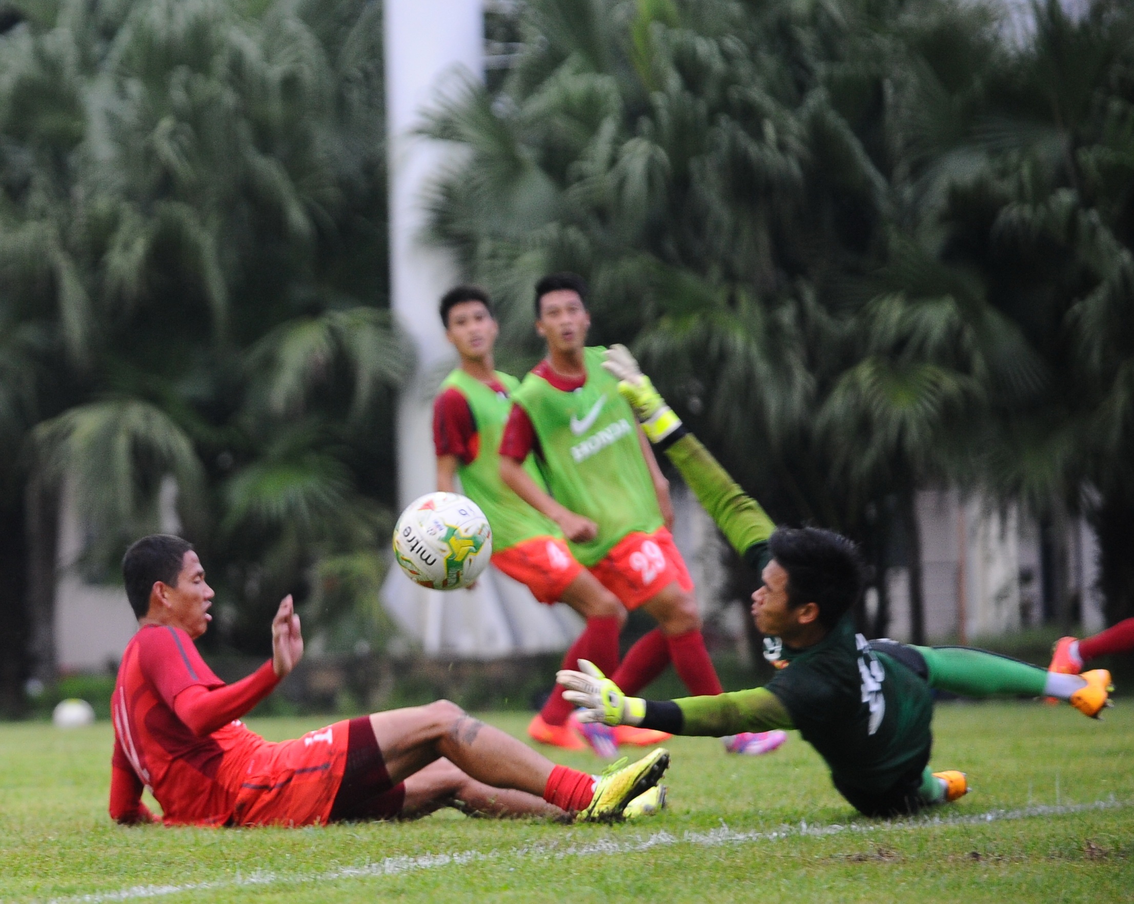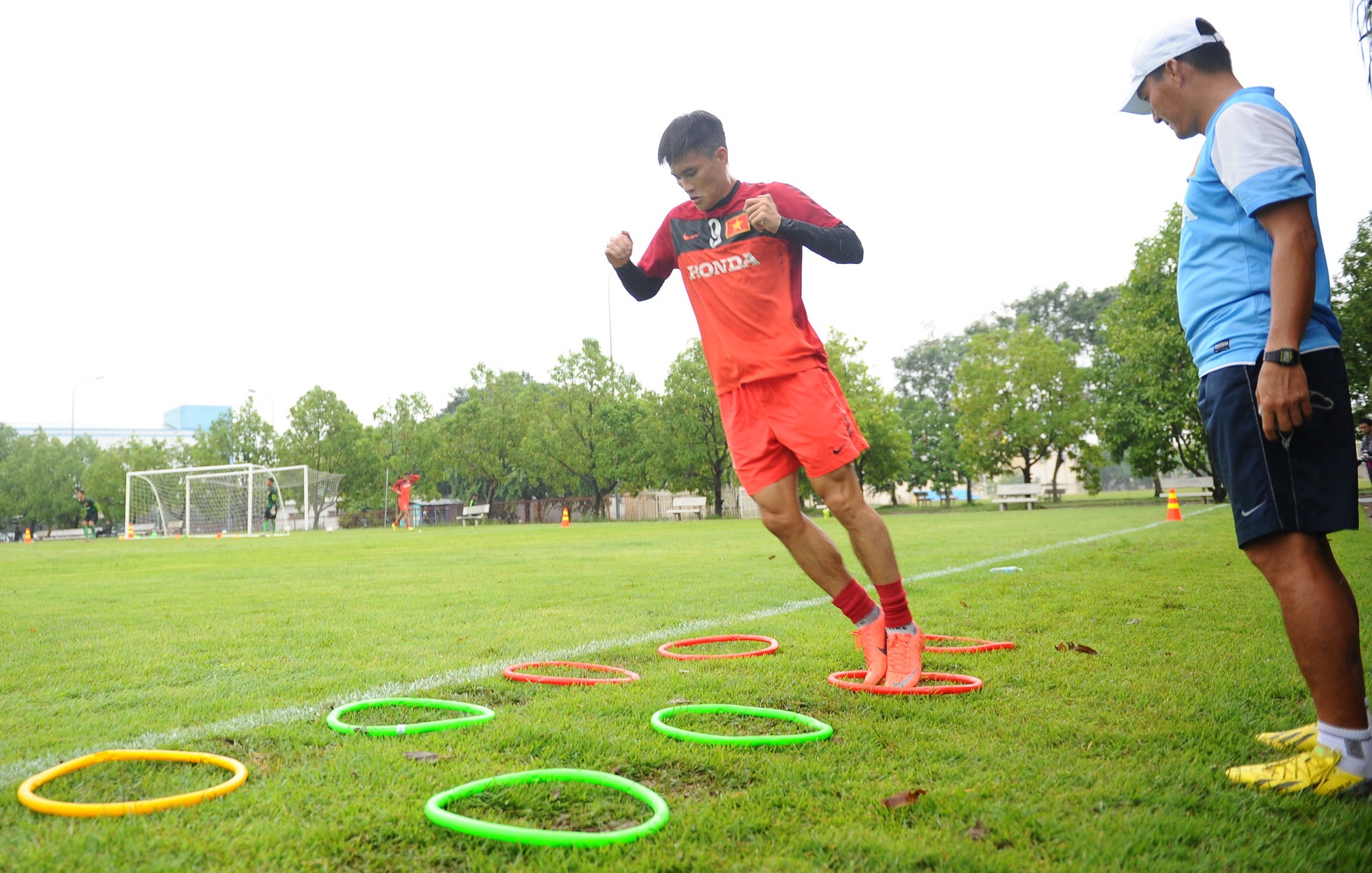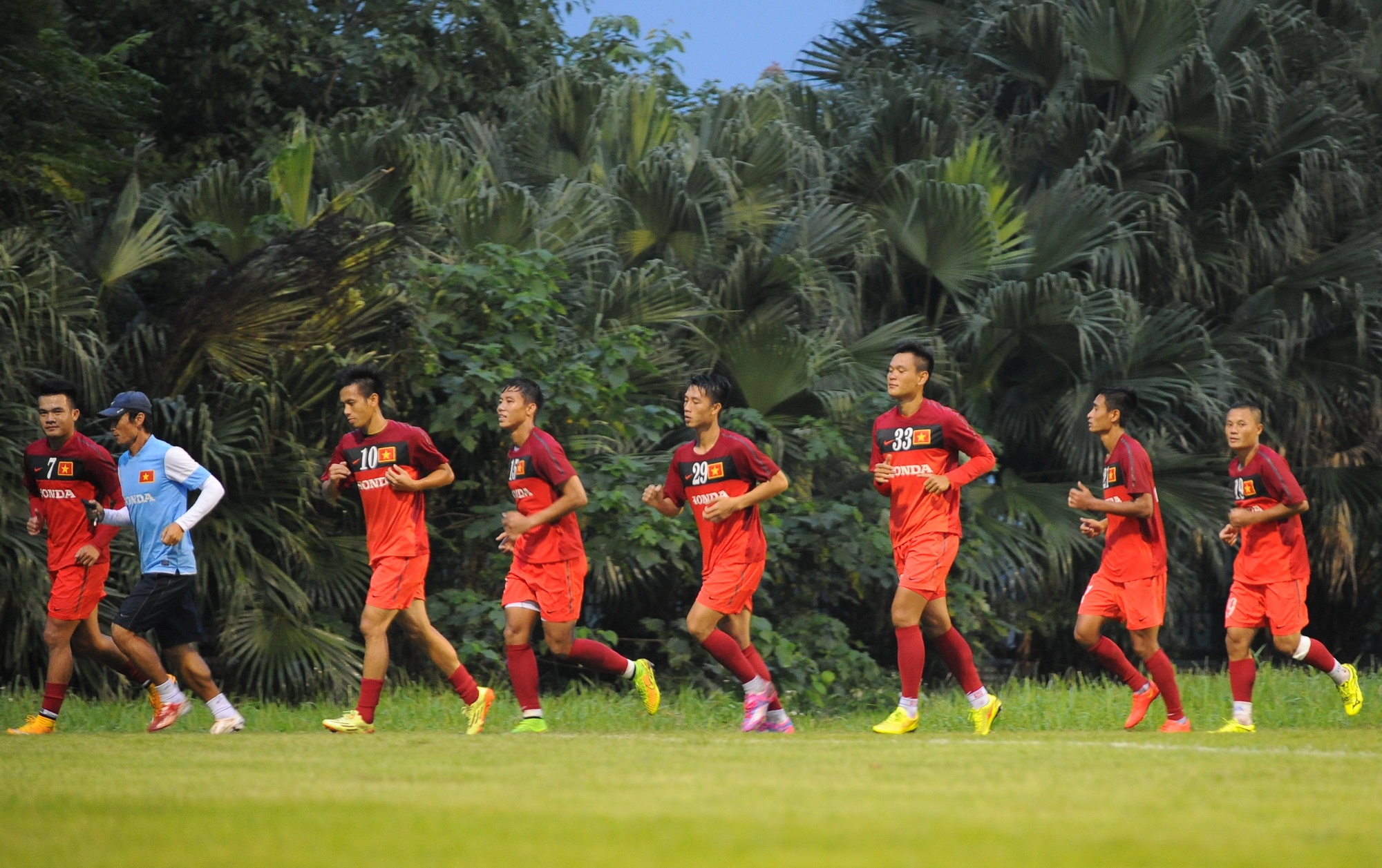| Các cầu thủ đều nỗ lực thể hiện mình dưới con mắt quan sát của HLV người Nhật Bản, bởi ông Miura sẽ còn phải loại 4 tuyển thủ nữa để chốt danh sách 22 người chính thức tham dự AFF Cup bắt đầu khởi tranh từ ngày 22/11 tới đây. |