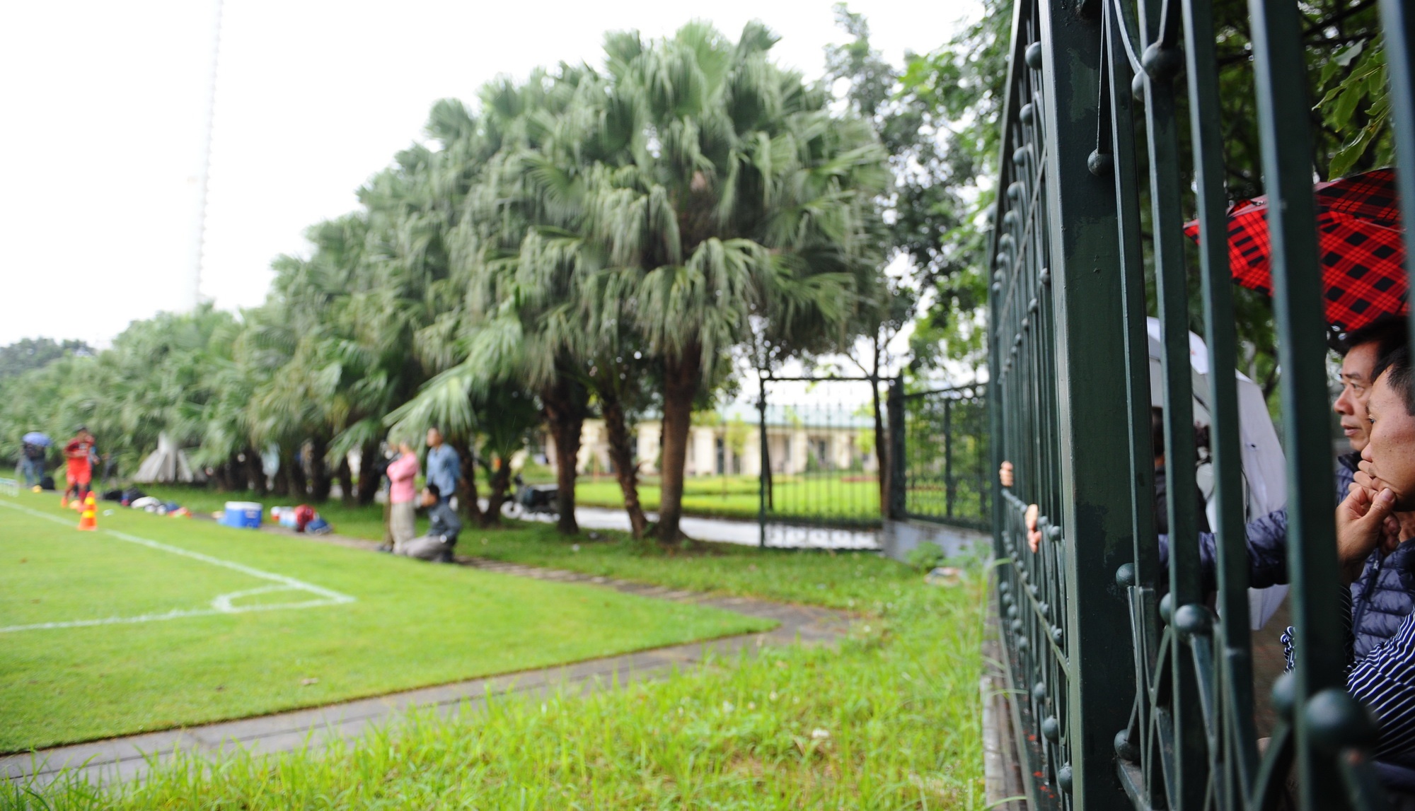 | Dù thời tiết Hà Nội buổi chiều nay có mưa nhỏ kèm gió lạnh đầu đông, tuy nhiên vẫn có nhiều người dân ở khu vực lân cận đứng theo dõi thầy trò HLV Miura tập luyện qua hàng rào sắt phía ngoài khuôn viên SVĐ Mỹ Đình. |