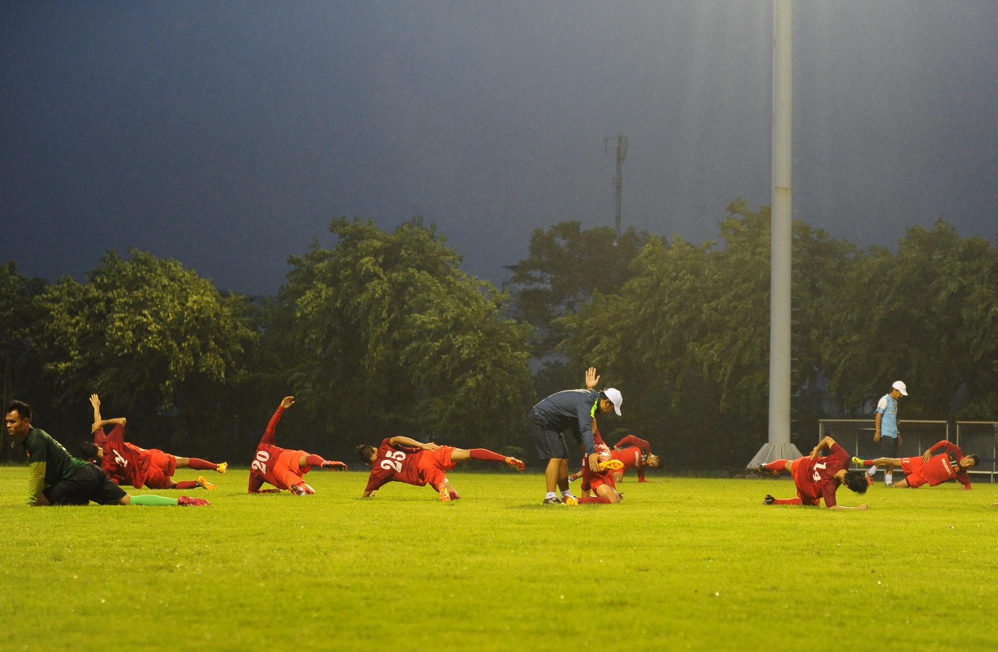 | Buổi tập kéo dài khoảng 1 giờ 30 phút sau đó BHL cho các cầu thủ chạy thả lỏng vòng quanh SVĐ. |