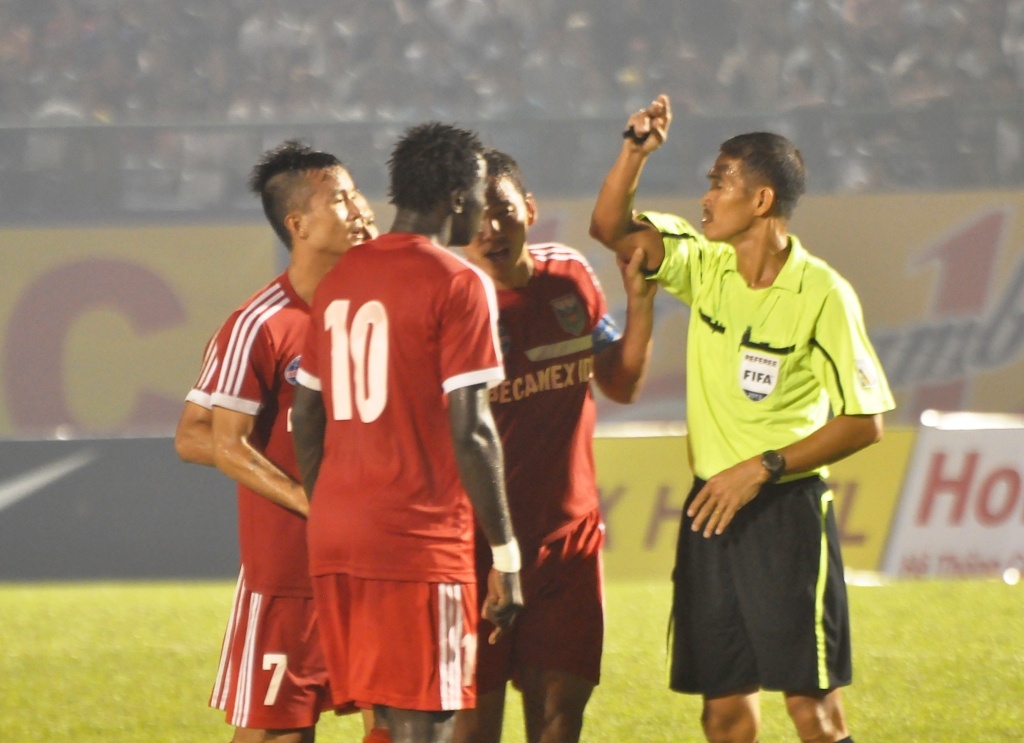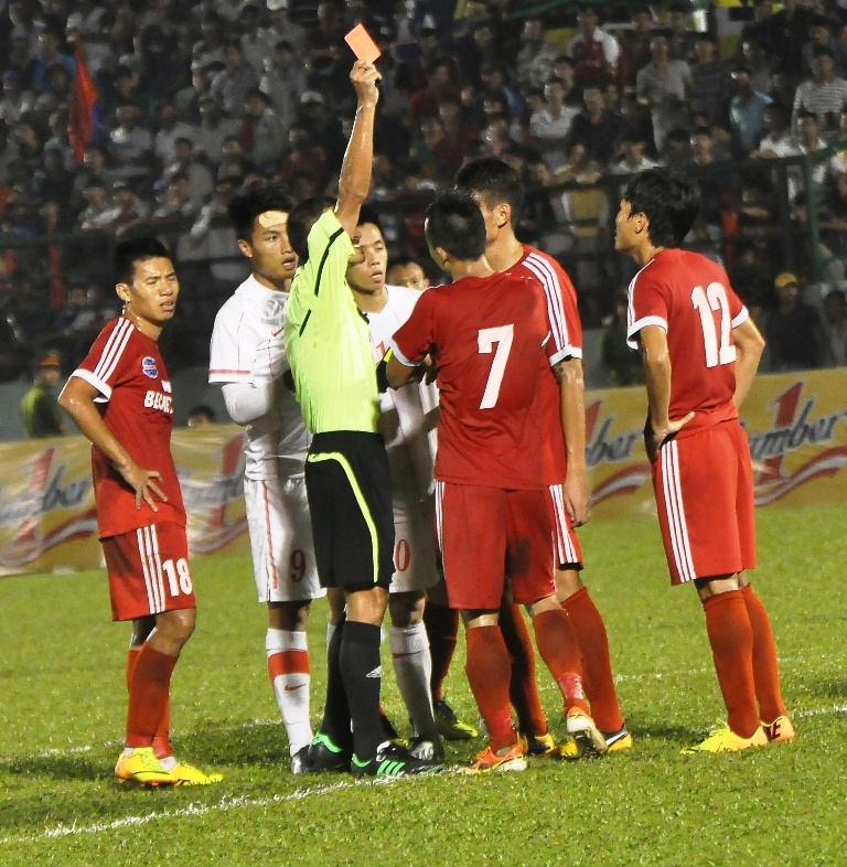 | Nếu nghiêm khắc hơn, trọng tài đã không rút ra 1 thẻ đỏ duy nhất dành cho Lương Minh Trung. |