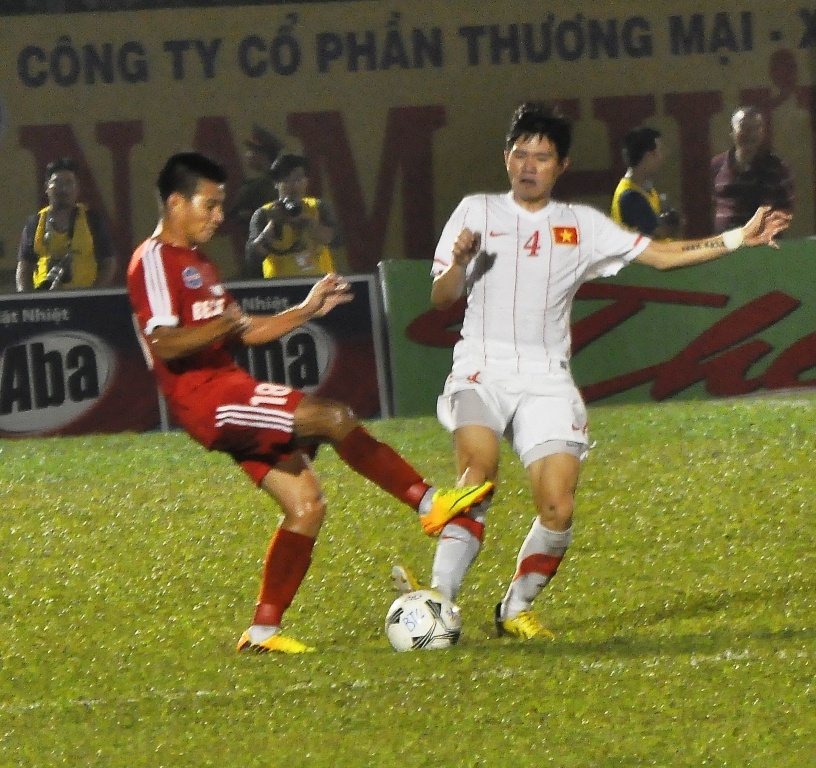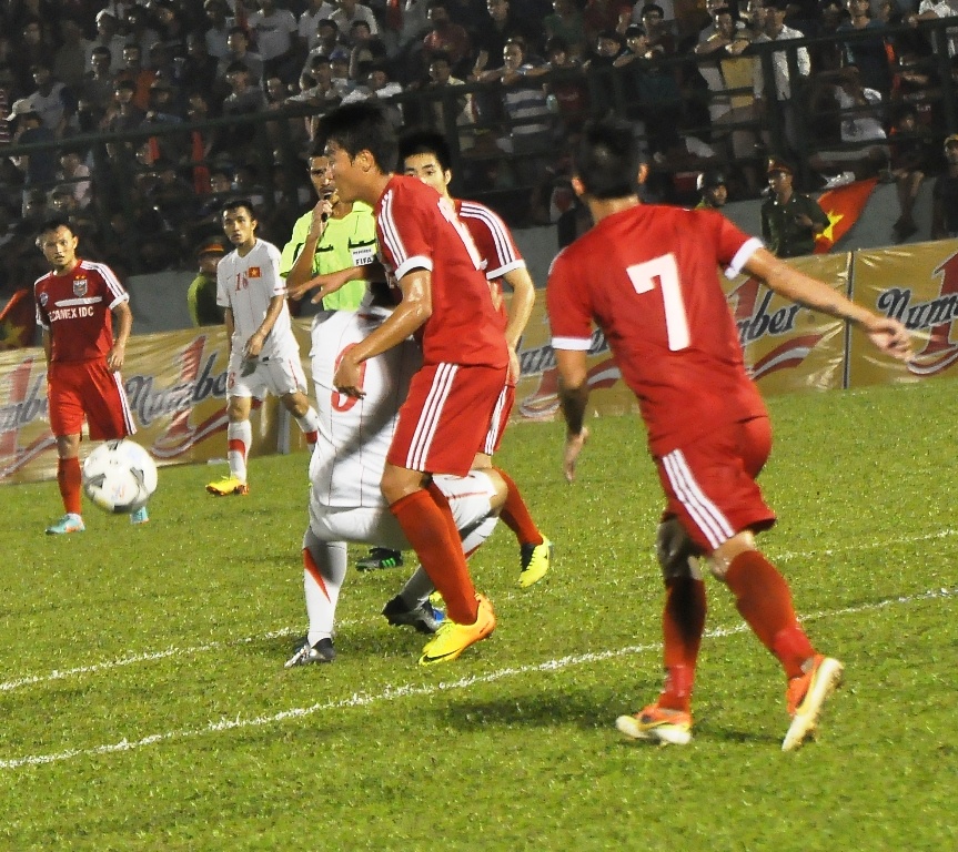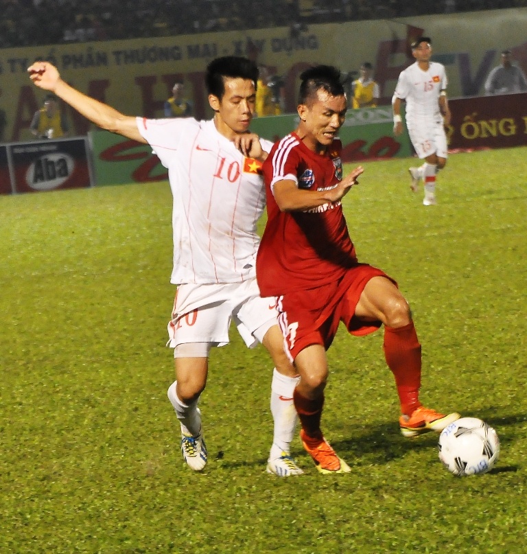 | Văn Quyết chơi có phần quyết liệt khiến các ngôi sao của B.BD nóng mắt. |