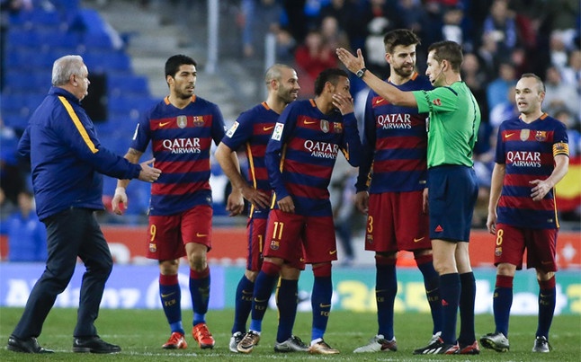 | Trọng tài điều khiển trận đấu có nhiều phán quyết bất lợi với Barcelona. |