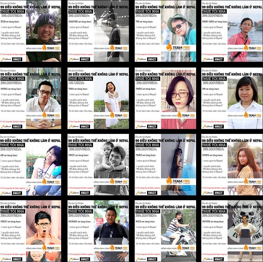 | Dự án 99 điều không thể không làm ở Nepal hiện đang được nhiều bạn trẻ đồng hành hỗ trợ kêu gọi mua vé ủng hộ chương trình, có 3 mức giá vé là 99.000 đồng, 199.000 đồng và 399.000 đồng. Ảnh: nhóm Lửa. |