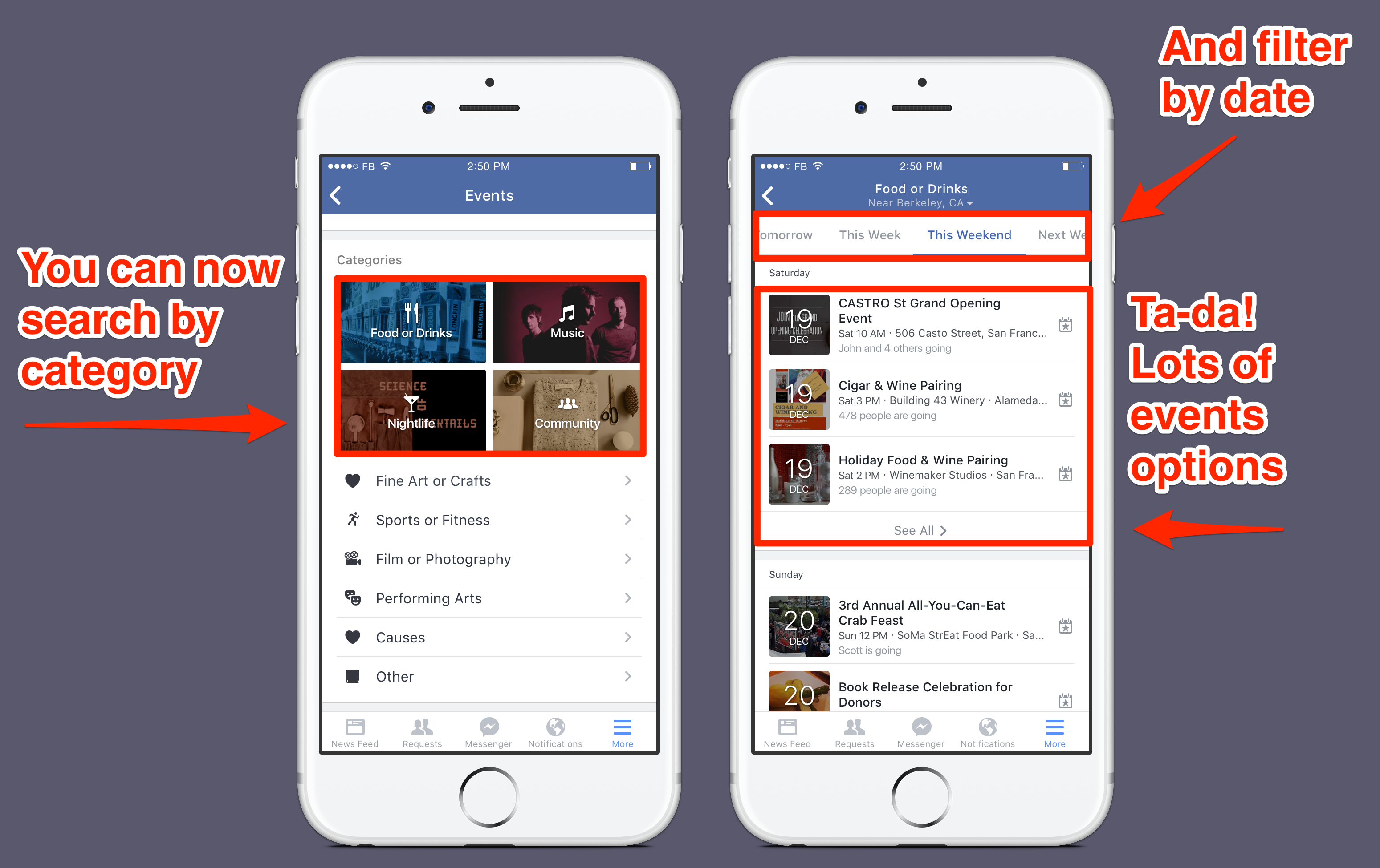 Mới đây, Facebook tung ra một tính năng hoàn toàn mới cho người dùng di động – nơi người dùng iPhone tại các thành phố lớn có thể tìm kiếm theo ngày, giờ hoặc theo nhóm sự kiện tại khu vực họ sinh sống.