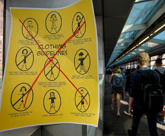 Trong cuộc phản đối quy định mặc đồng phục đã có tới 60 học sinh mặc chiếc áo phông đơn giản, màu trắng có in chữ: “GHS Body Shames” (tạm dịch: xấu hổ về cơ thể). Tất cả đều bắt đầu từ lúc Patrice DiChristina, học sinh trường THPT Greenwich, Mỹ bị nhắc nhở nên “che người lại” khi cô mặc áo phông, váy và hở ra 2cm phần eo.