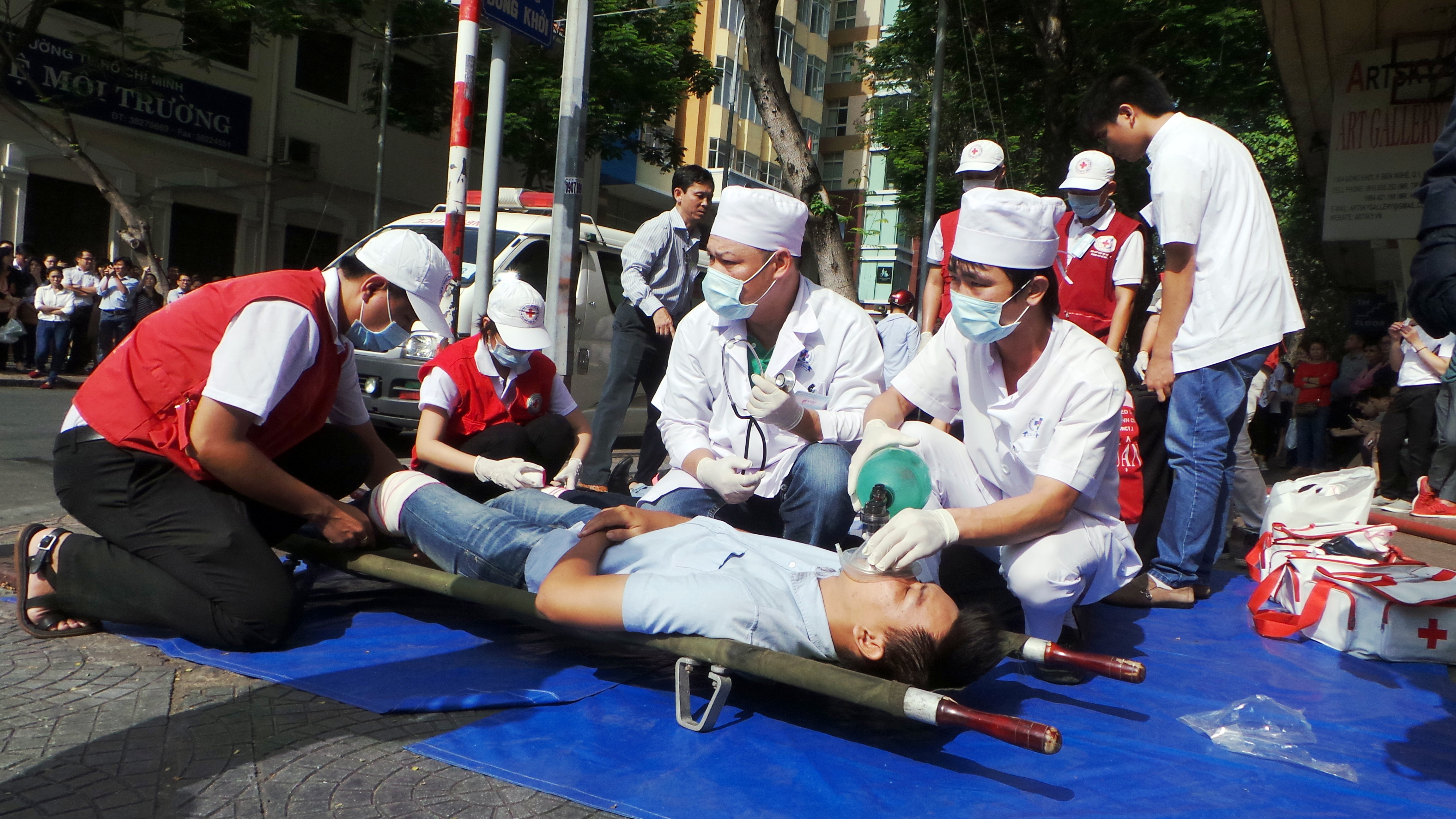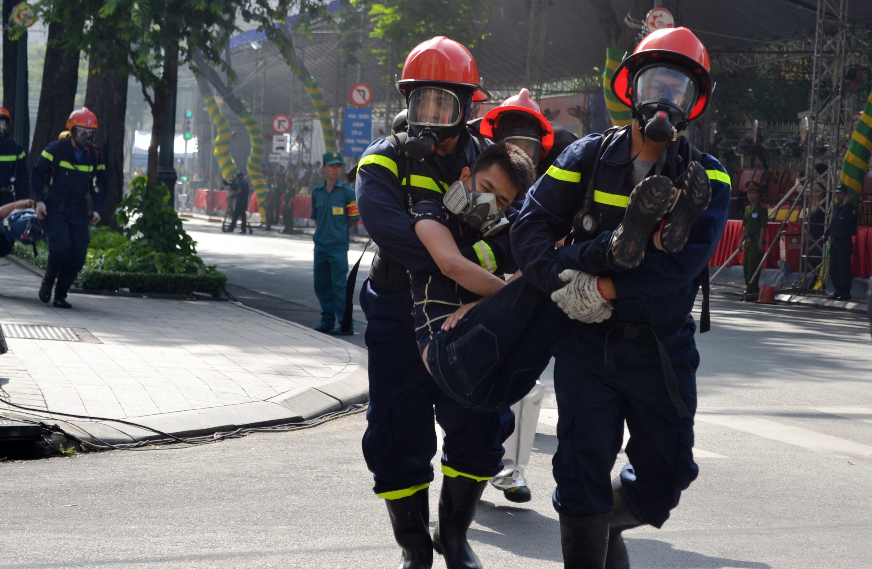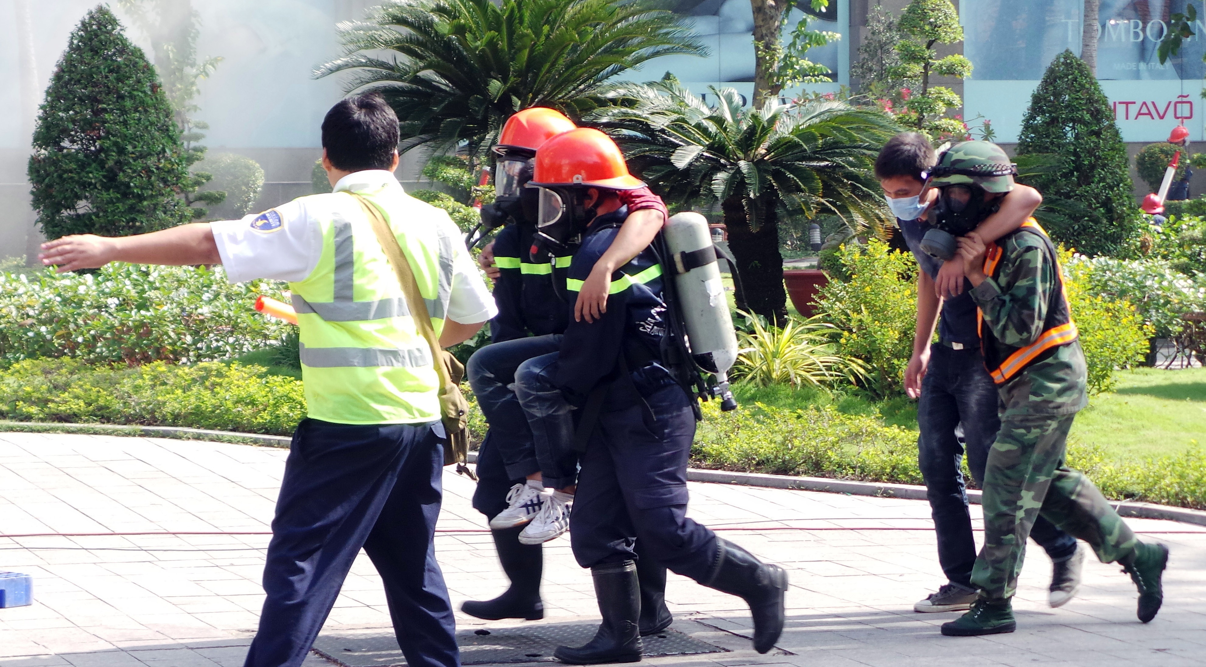 Tình huống giả định là tầng hầm B3 của tòa nhà Vincom Center Đồng Khởi xảy ra cháy do rò rỉ khí gas, hàng trăm người mắc kẹt. Chính quyền tổng huy động lực lượng đến cứu hộ.