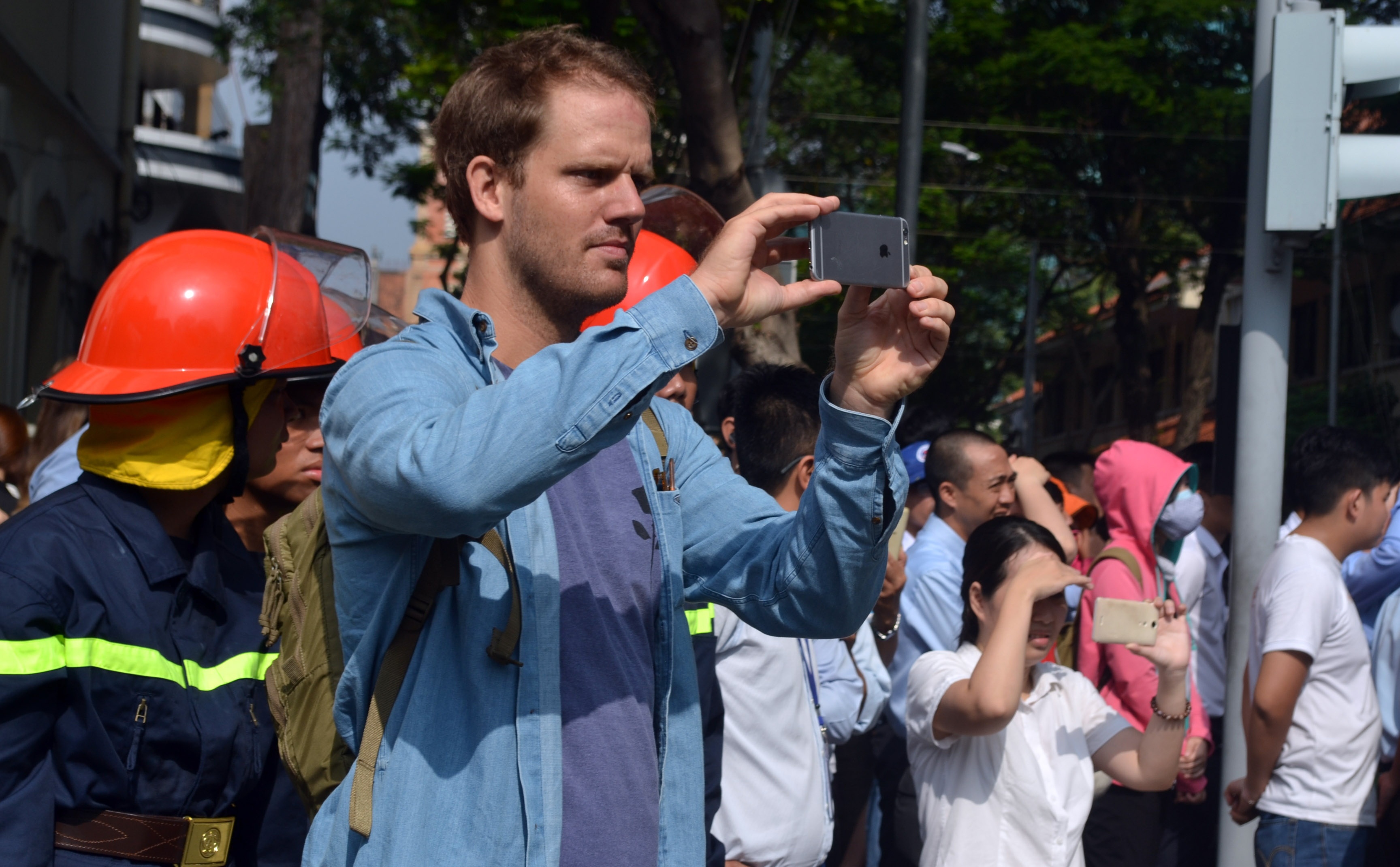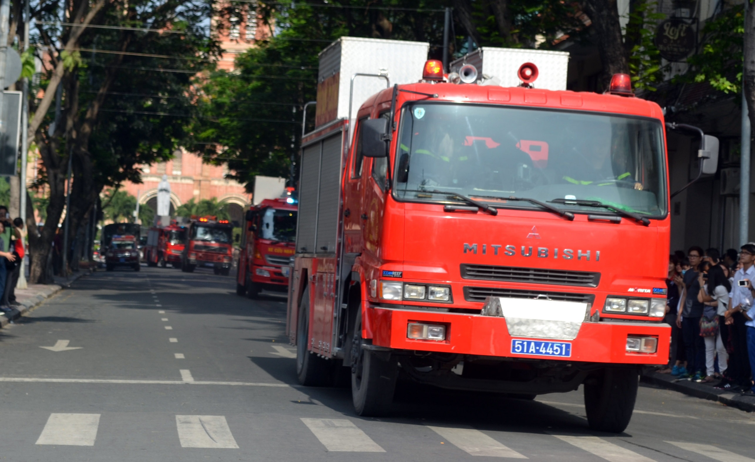 | Buổi tổng duyệt chữa cháy thu hút sự chú ý của hàng trăm người dân Sài Gòn và du khách nước ngoài. |