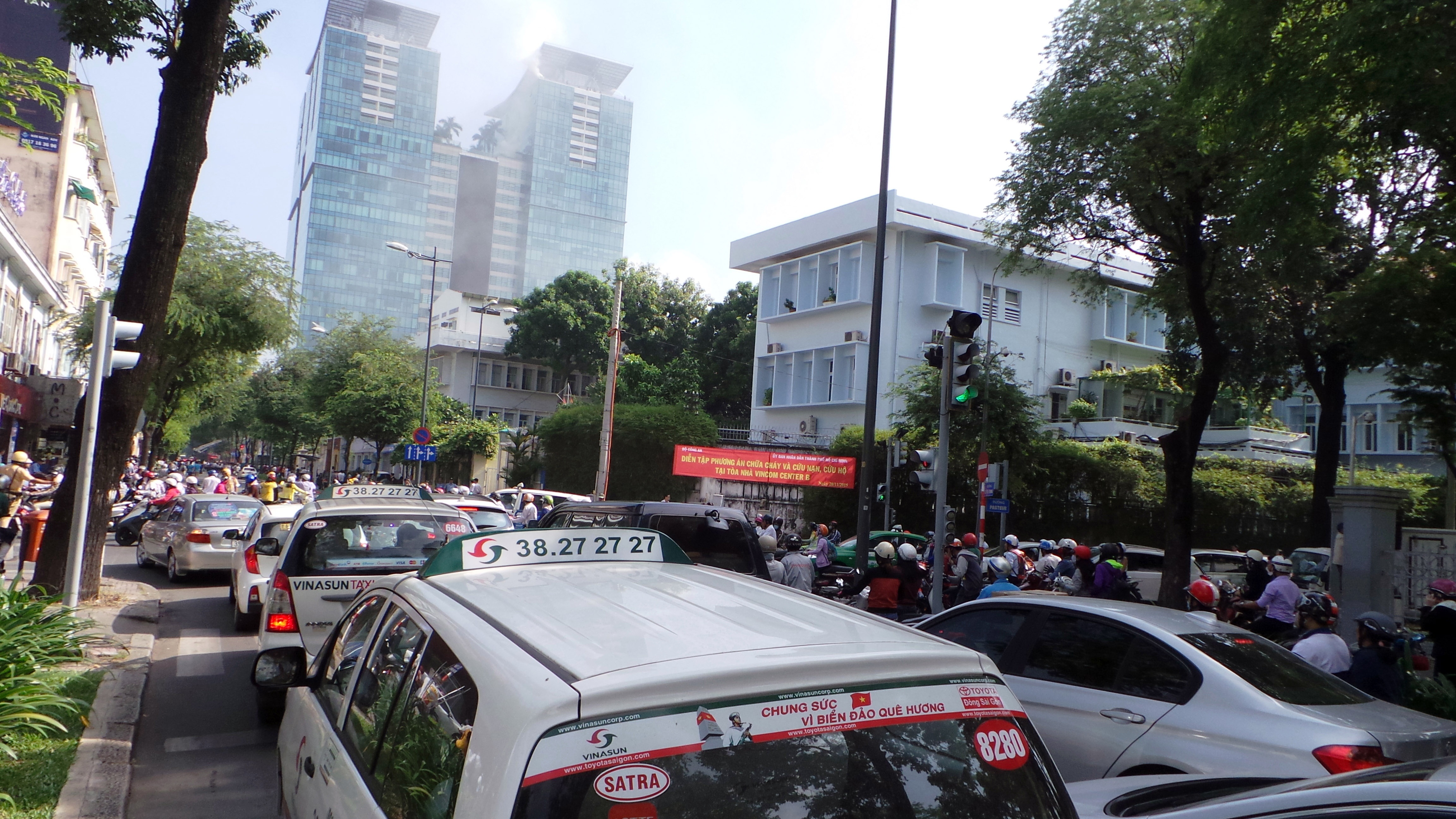 | Giao lộ Lý Tự Trọng - Parteus bị ùn tắc vì cấm đường. |