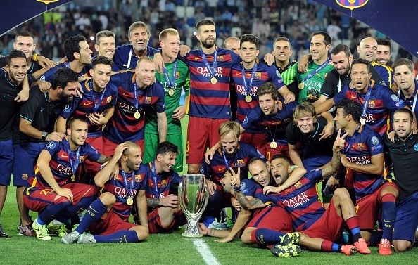 | Barcelona vừa thị uy sức mạnh bằng chức vô địch thứ 4 (Siêu cúp châu Âu) trong năm 2015. Ảnh: Getty Images. |