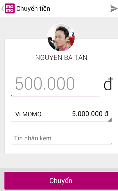 | MoMo cho phép người dùng thao tác chuyển khoản nhanh chóng. |