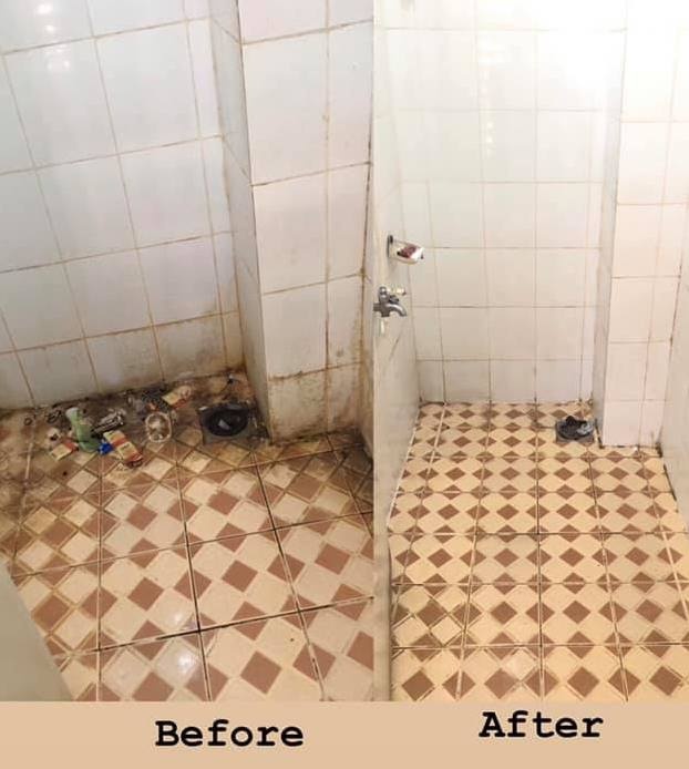 Đức Anh cho hay cậu đã dùng nước tẩy và dụng cụ cọ rửa được bên hậu cần phát cho để dọn dẹp. 10X mất hơn 2 tiếng để cọ rửa khu nhà vệ sinh vì có khá nhiều vết ố bẩn do lâu ngày không có người ở.